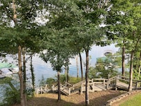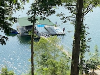 Enjoy your coffee or cocktail on the 500 sq foot covered porch. Take the short staircase to the lake to enjoy swimming or relaxing on the swim pier and double boat slip. Explore the quiet but large cove on either your own boat, or on one of our kayaks or paddle boat.