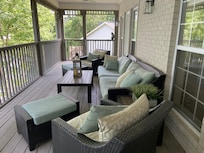 -500 ft upstairs covered porch with dining table and plenty of seating