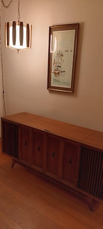 This 2 BR duplex upper flat is located in Milwaukee's Riverwest neighborhood. This neighborhood is often called the "Brooklyn of Milwaukee". The residents of this neighborhood range from students to professionals. It has a particularly vibrant arts and music scene, and is sought after for its proximity to UW Milwaukee, the Milwaukee River, and downtown. While nicely updated, this unit features many original elements, as well as vintage mid-century furnishings including a working HiFi.