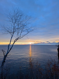 There are incredible views to the north of the Palisade Head Cliffs. These cliffs reach 350 feet high and are a favorite of rock climbers. You can hear the waves of the lake crashing against the ledge rock cliffs just 70 feet from the cabin. The sunrises over the lake are spectacular; in the evening you might be able to view the northern lights.