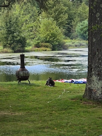 The pond offers excellent fishing. What's better, you don't need a PA . fishing license to fish in our pond. We already took care of that for you. All we ask is that you carefully, and quickly return all fish unharmed to the water. All fishing is catch and release. There are boats for your use, just always wear a life jacket, please. The pond is easily accessible and provides a refuge for many birds and animals, plus weary people that need a break from it all.