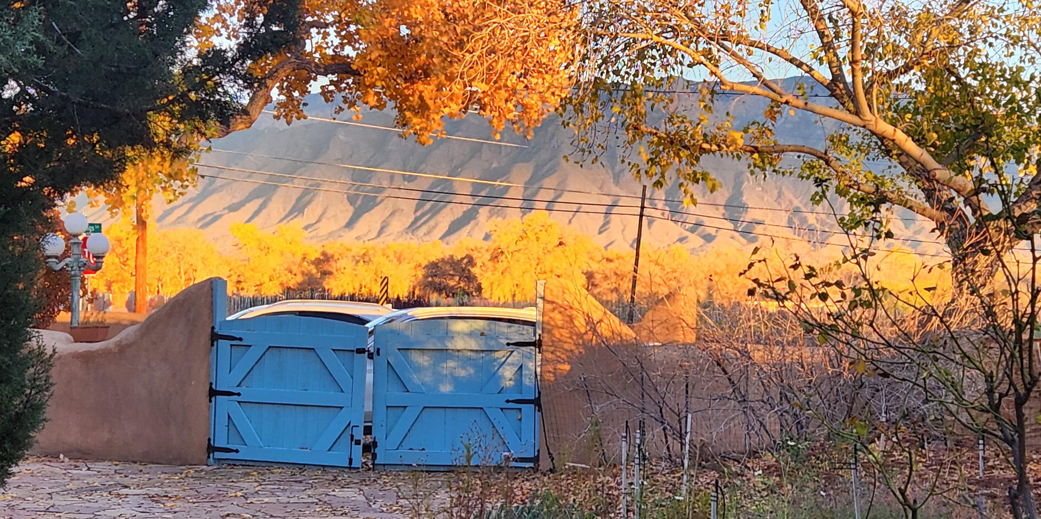 From your own porch/portal or from the bedroom window seat, you can see spectacular views of the rugged Sandia Mountains. A very short stroll away is the romantic Rio Grande River and the beautiful Bosque Nature Conservancy, offering miles of trails for hiking, cycling and horseback riding. A few minutes drive brings you to downtown Corrales, with a selection of fine restaurants and shops. And not far down the road you'll find major shopping and the many attractions of the City of Albuquerque, including museums, theatres, the balloon fiesta park, the city zoo, as well as the fabulous Sandia Mountain wilderness. The famous capital city of Santa Fe is only 45 minutes away with attractions too numerous to mention.