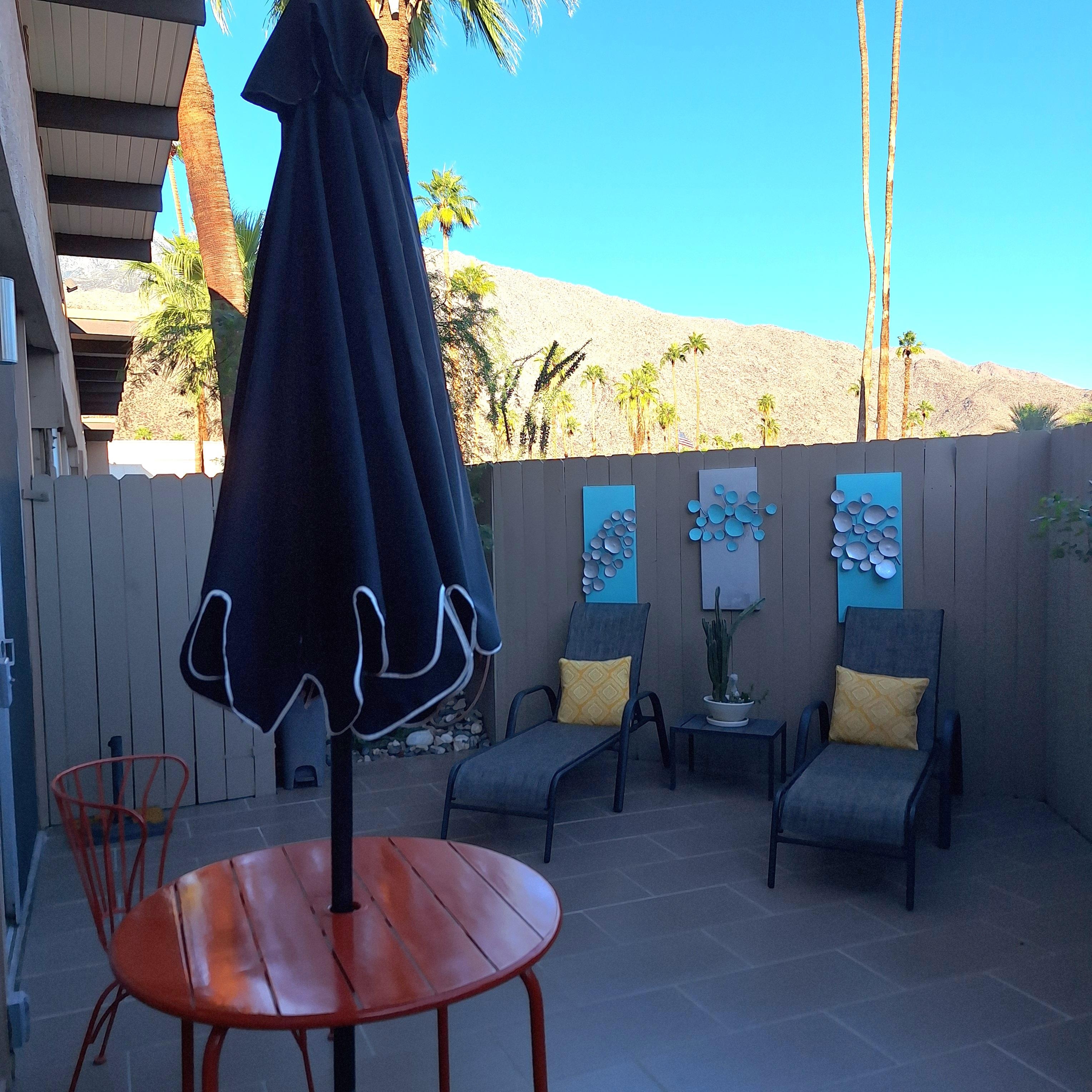 Situated near the NE corner of the complex along William Krisel Way and East Palm Canyon Drive, this 1 bedroom ground floor condo enjoys a private patio larger than most all other units, and is just steps away from parking, making entry and exit much more convenient. If privacy, discretion and VIEWS are important to you, then this is the unit for you!