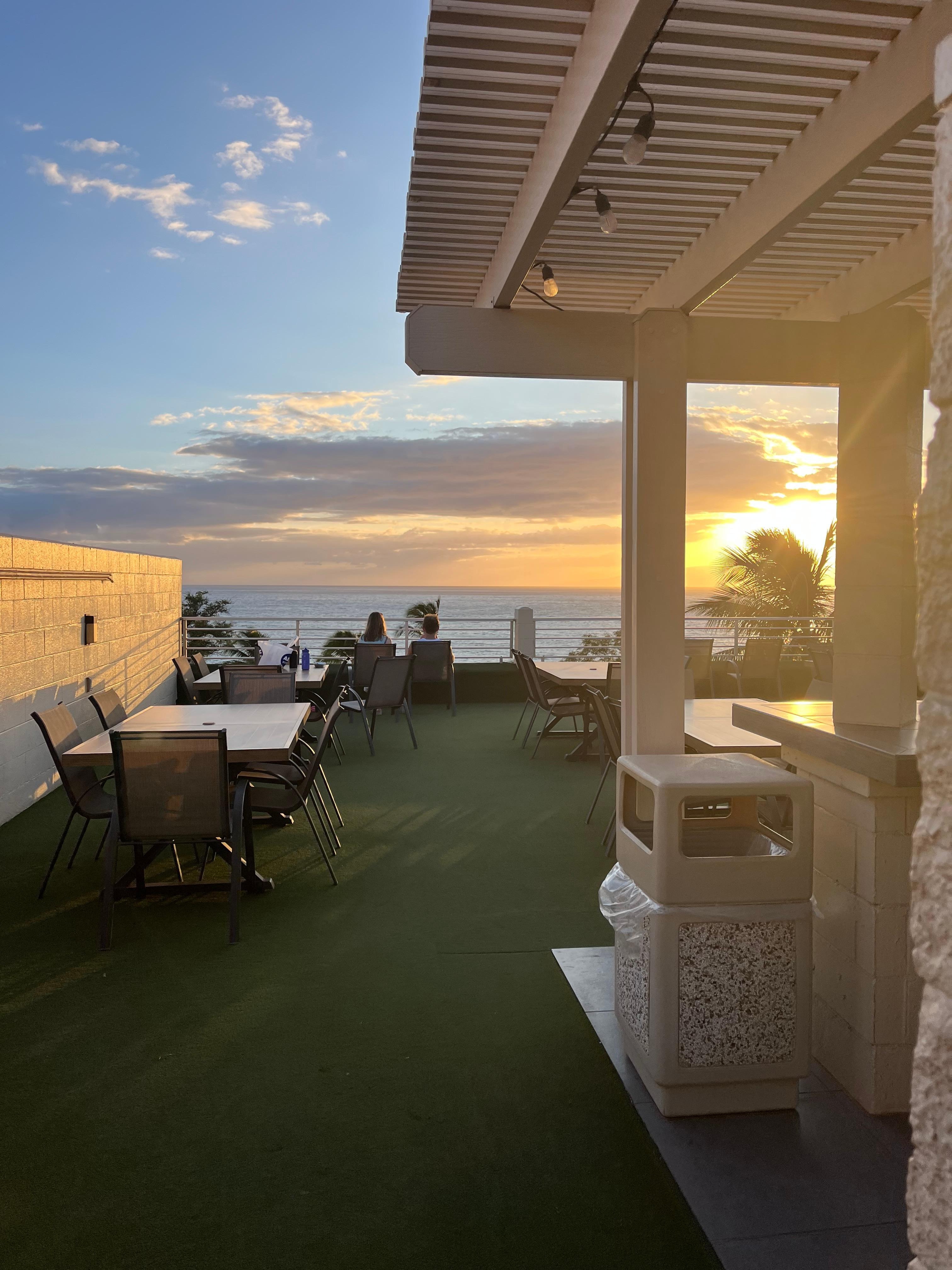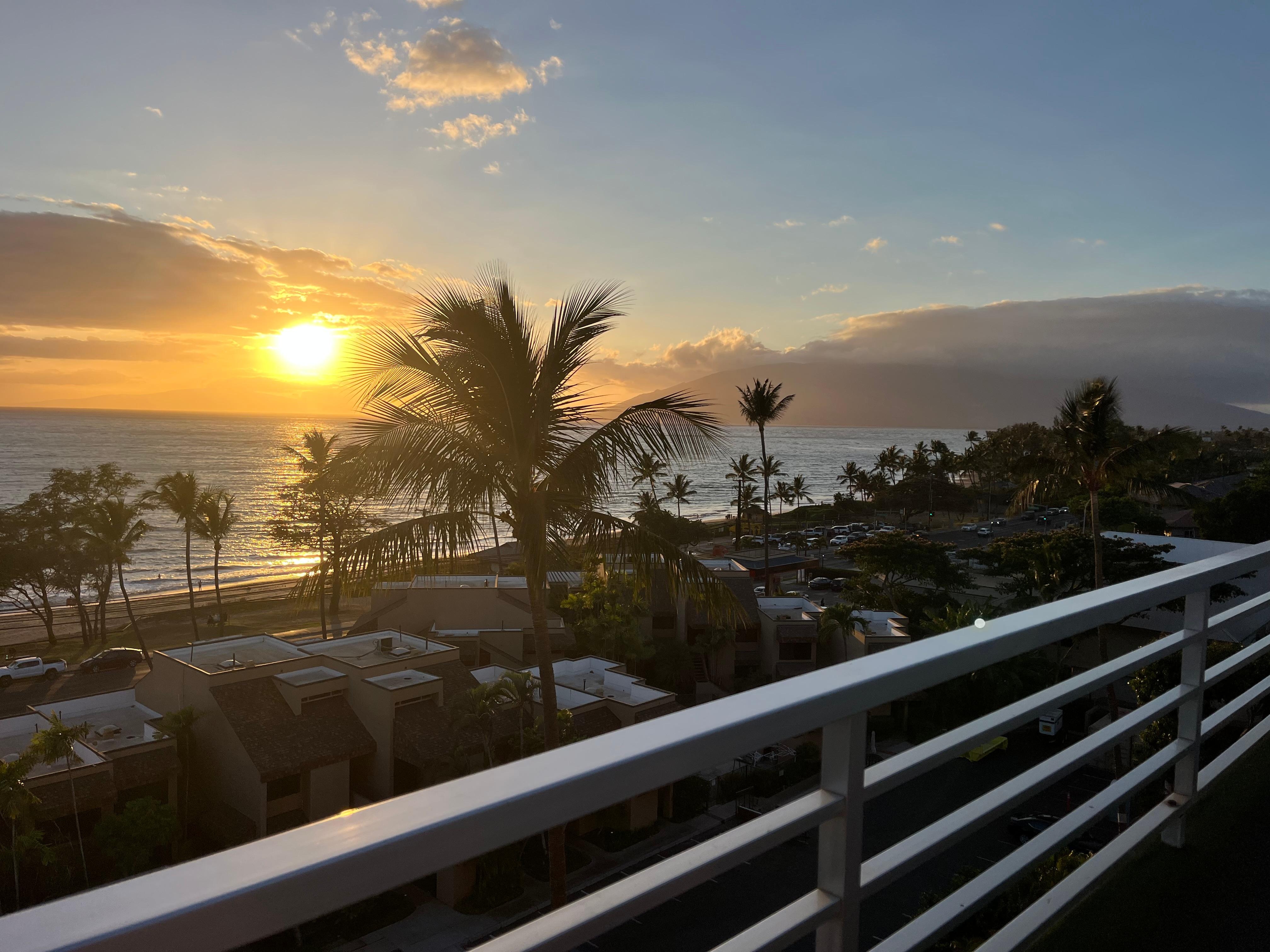 The views from our private lanai are especially spectacular at sunset. At sunrise, the tiny island birds will greet you from the palm tree fronds that reach the lanai, and, if you provide even the slightest encouragement, they will be on the lanai with you. (Please do not let them come into the condo!)