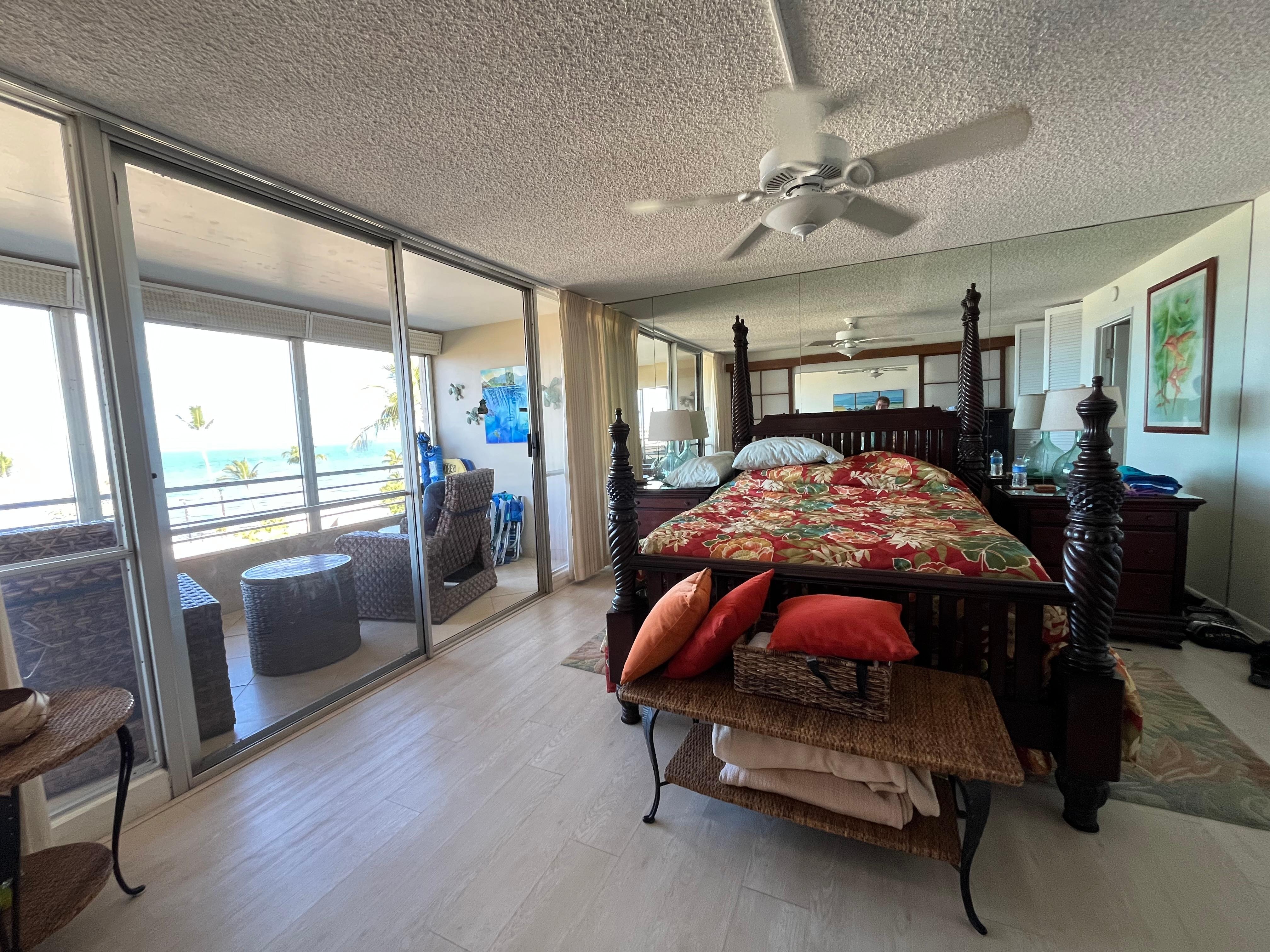 Our master bedroom opens to the double lanai, which overlooks the beach & ocean, and features a queen-sized, 4 poster bed with 800 thread count sheets and custom, designer bedspread. The ocean will lull you to sleep every night.