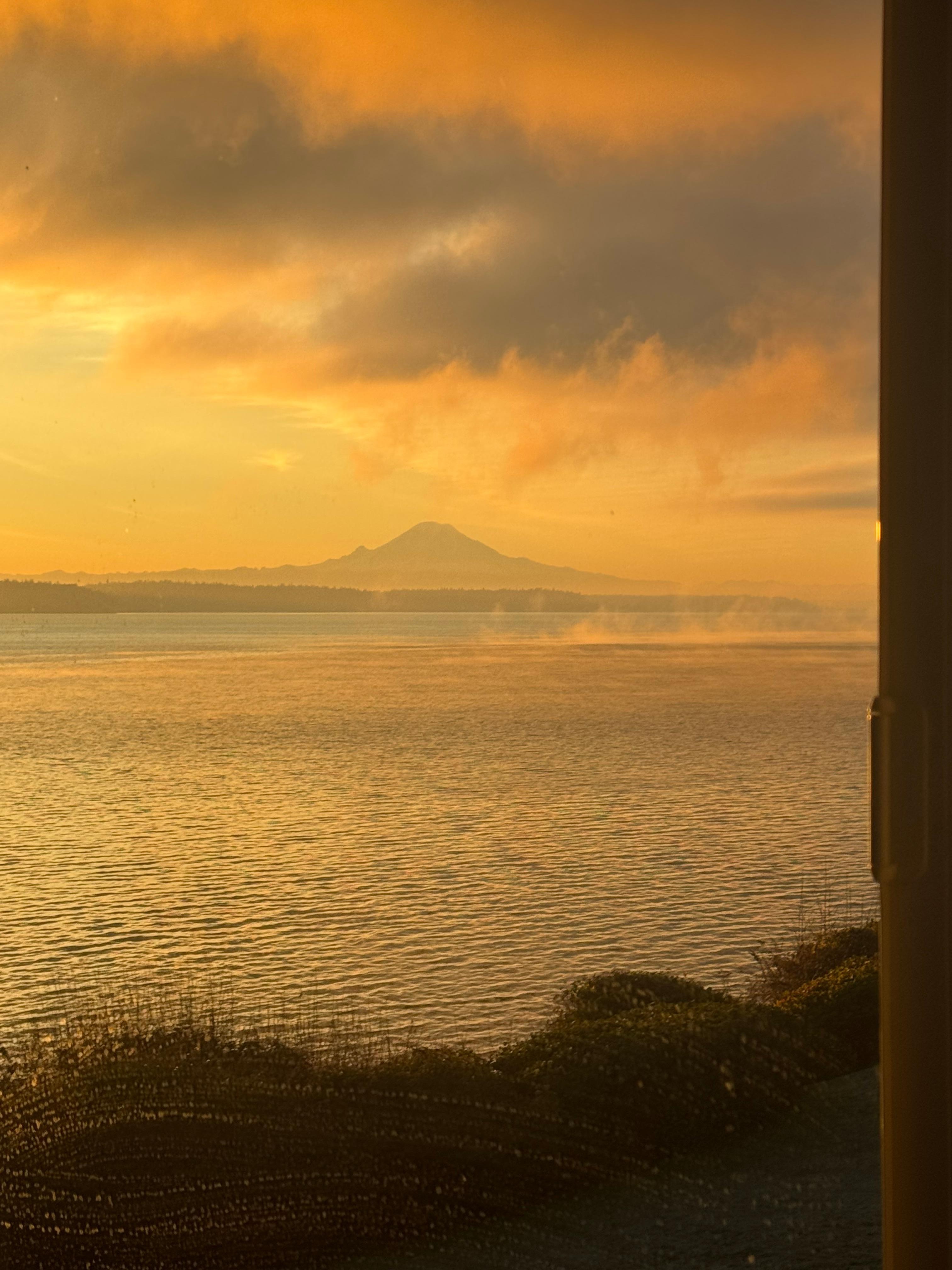 P-000053Pristine & tranquil Bainbridge Island home with breathtaking Seattle, Puget Sound & Mount Rainier views. Conveniently located close enough to town and ferry and is a pleasant bike ride away from shops& restaurants. Wake up in this 3 bedroom, 3 bathroom home to stunning views of Puget Sound & Mount Rainier from a king Bed upstairs in Master Suite (with soaking tub and walk in shower) . Second bedroom upstairs, has a queen bed in the private room, with a shared walk-in shower bathroom to the fourth sleeping area, a day bed with 2 twins able to convert to another double bed in the upstairs loft. Private downstairs bedroom with Queen Bed, with shared downstairs bathroom with walk in shower. Downstairs laundry room with washer & dryer for guest access. The house is very spacious, great floor plan and the wrap around picture windows made the view of the Seattle city lights so spectacular, any time of the day. This gourmet kitchen with its bar seating provided more room for eating, and also the table and chairs on the deck. Kitchen is well stocked with eating & cooking utensils, updated appliances, double oven and lots of cooking condiments. While cooking enjoy breathtaking views of Puget Sound & Mt. Rainer, open to the den and dining area, perfect for entertaining or intimate dining setting.