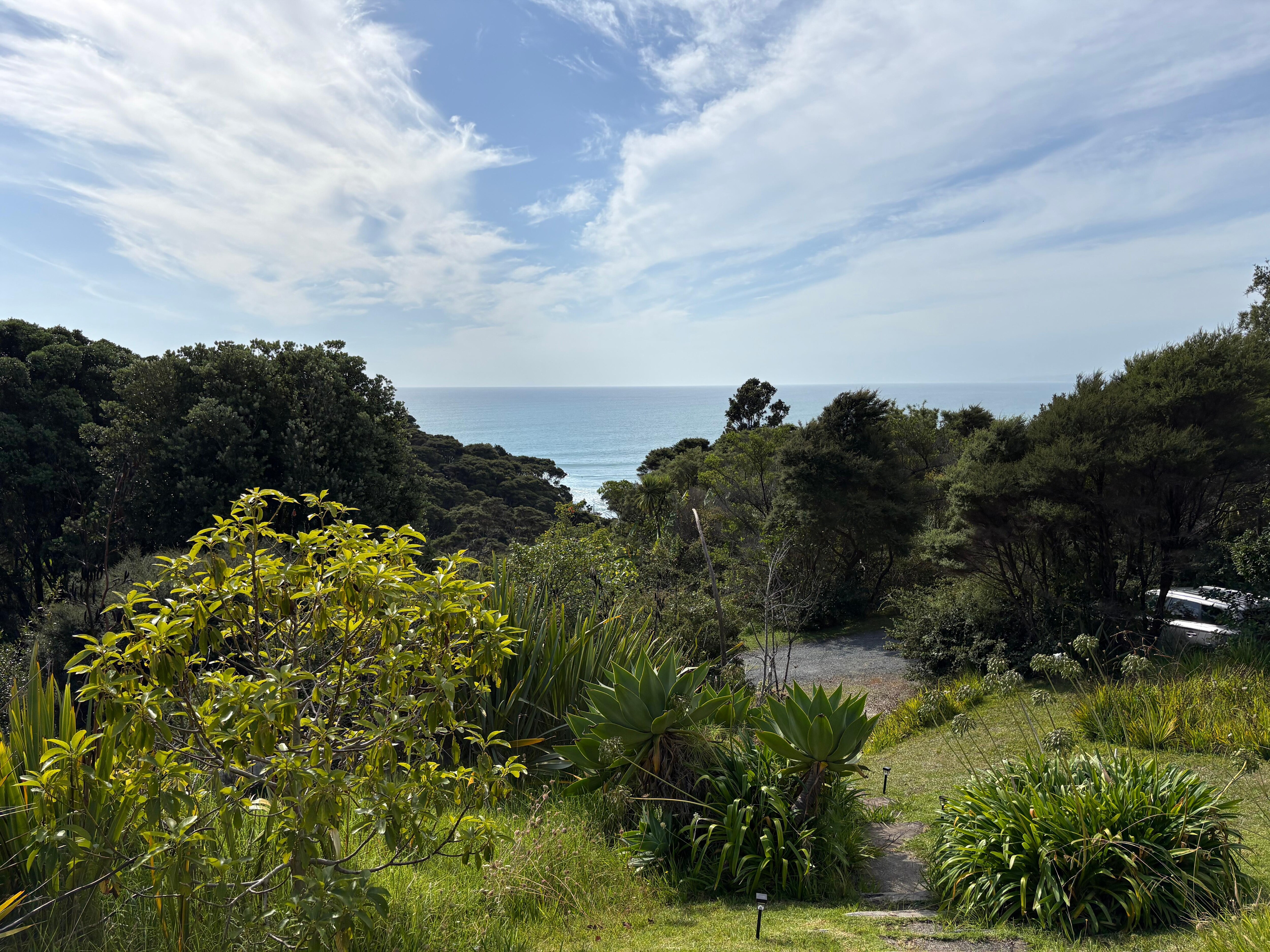This unique property is set amongst 4.5 acres covered mostly in native bush located in the Manu Bay Coastal Reserve area. Flourishing bird life includes Tui, Kereru, Fantails and Warblers nesting in surrounding trees. Bird song can be heard throughout the day especially at dawn.
