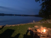 - Private dock & beach, lake views