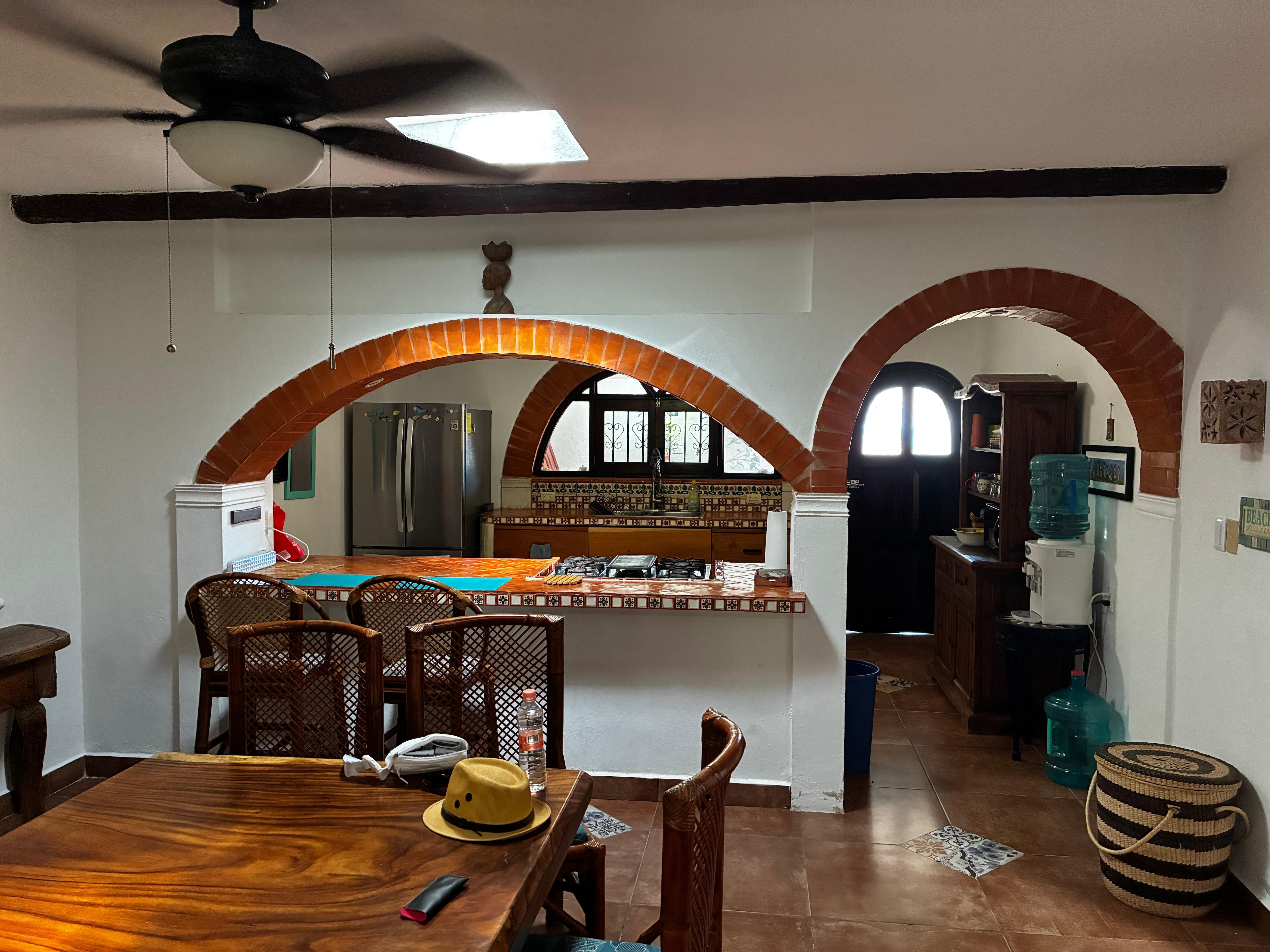 Casa Los Arcos is a refreshing retreat, ideal for families or small groups of adults. The property can comfortably sleep 8 people - 6 in the main house and 2 in the charming casita. The main house features three bedrooms: oceanfront master bedroom with queen bed and full bath ensuite, second bedroom with queen bed and workstation; and cozy third bedroom with queen bed and garden views. There is a full bathroom with walk-in shower in the main house and another full bathroom with walk-in shower next to the pool. In a separate building, the casita has a double canopy bed, kitchenette, dining area and full bathroom with walk-in shower. To ensure your comfort, all rooms are equipped with ceiling fans, and each bedroom features air conditioning, ceiling fans, and floor fans.