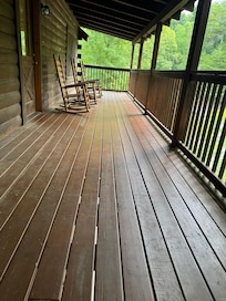 OUTDOOR DECKS: Enjoy the breathtaking views and relax in one of our rocking chairs, enjoy the swing, enjoy lunch on the picnic table, or chill in the hot tub.