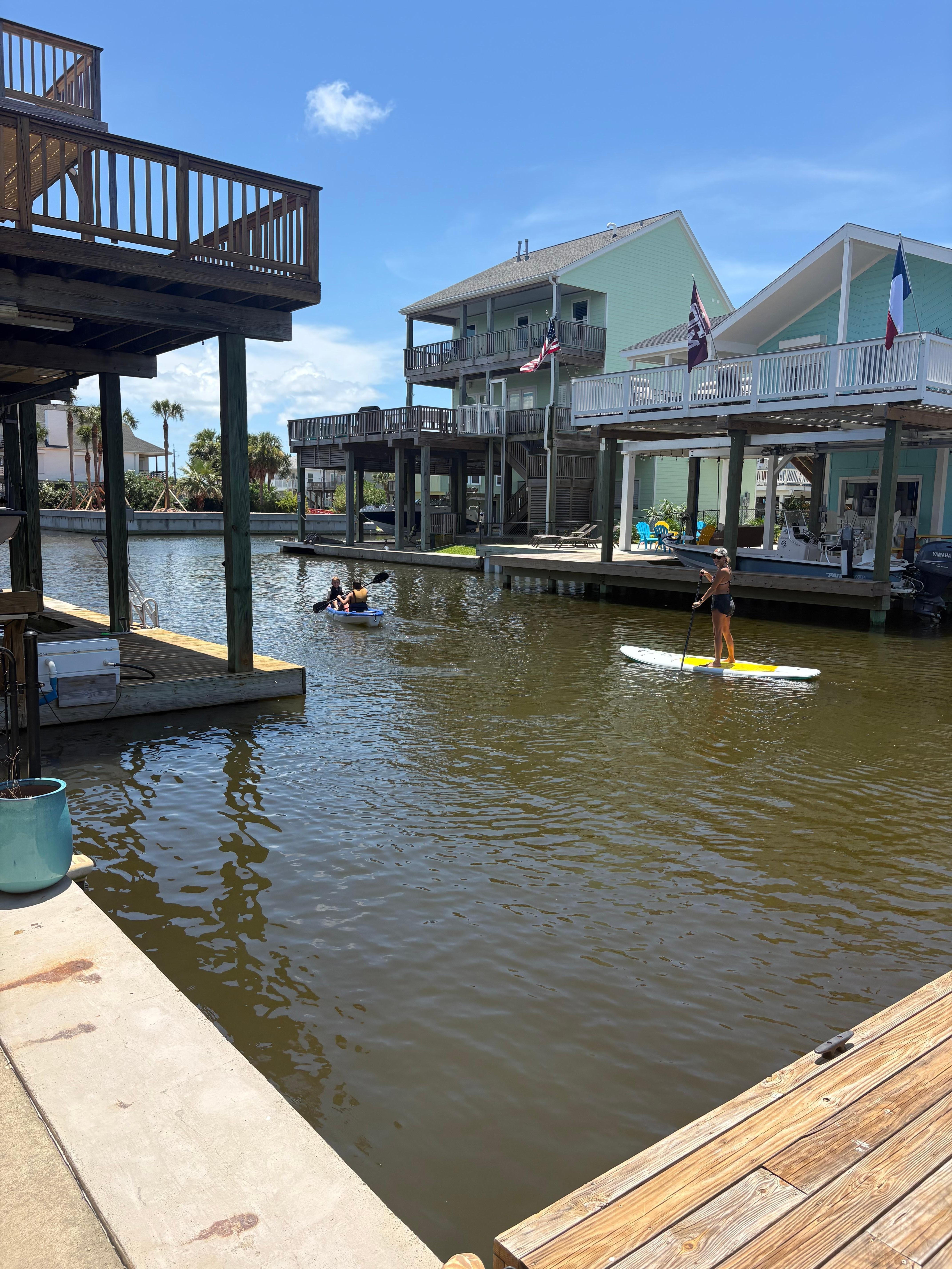 Welcome to Water’s Edge in Jamaica Beach where families can have fun in the sun and shade, in the water and on land! Water views are everywhere from this house that is just around the corner from the bay access. For the water, we have two kayaks, including a fast fishing kayak, a paddleboard, inflatable floats and floating saddle seats. For everyone’s safety, we also have life jackets of various sides including for kids. Want some waves? The beach on the Gulf side is a few minutes away by car, or you can rent a golf cart…either way you can park on the beach so it’s easy to bring beach chairs, toys and boogies boards, all of which is available at the house for your use.