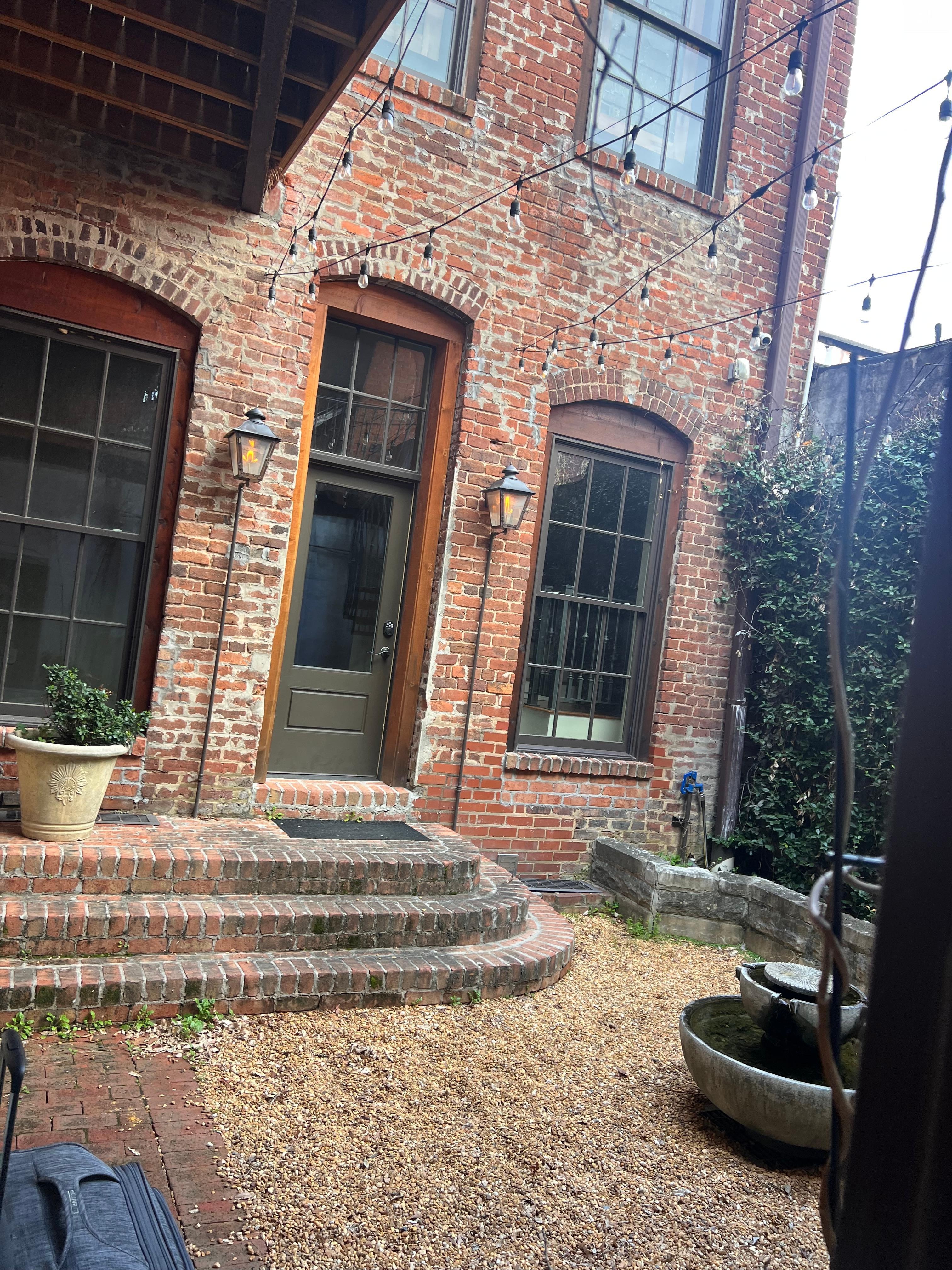My wife Stacy renovated a space on Broad Street in lovely downtown Rome. The space has 3 bedrooms. The master bedroom is on the main floor of the loft with two bedrooms furnished with full sized bunk beds made from black walnut. The bunk beds have mattresses:)