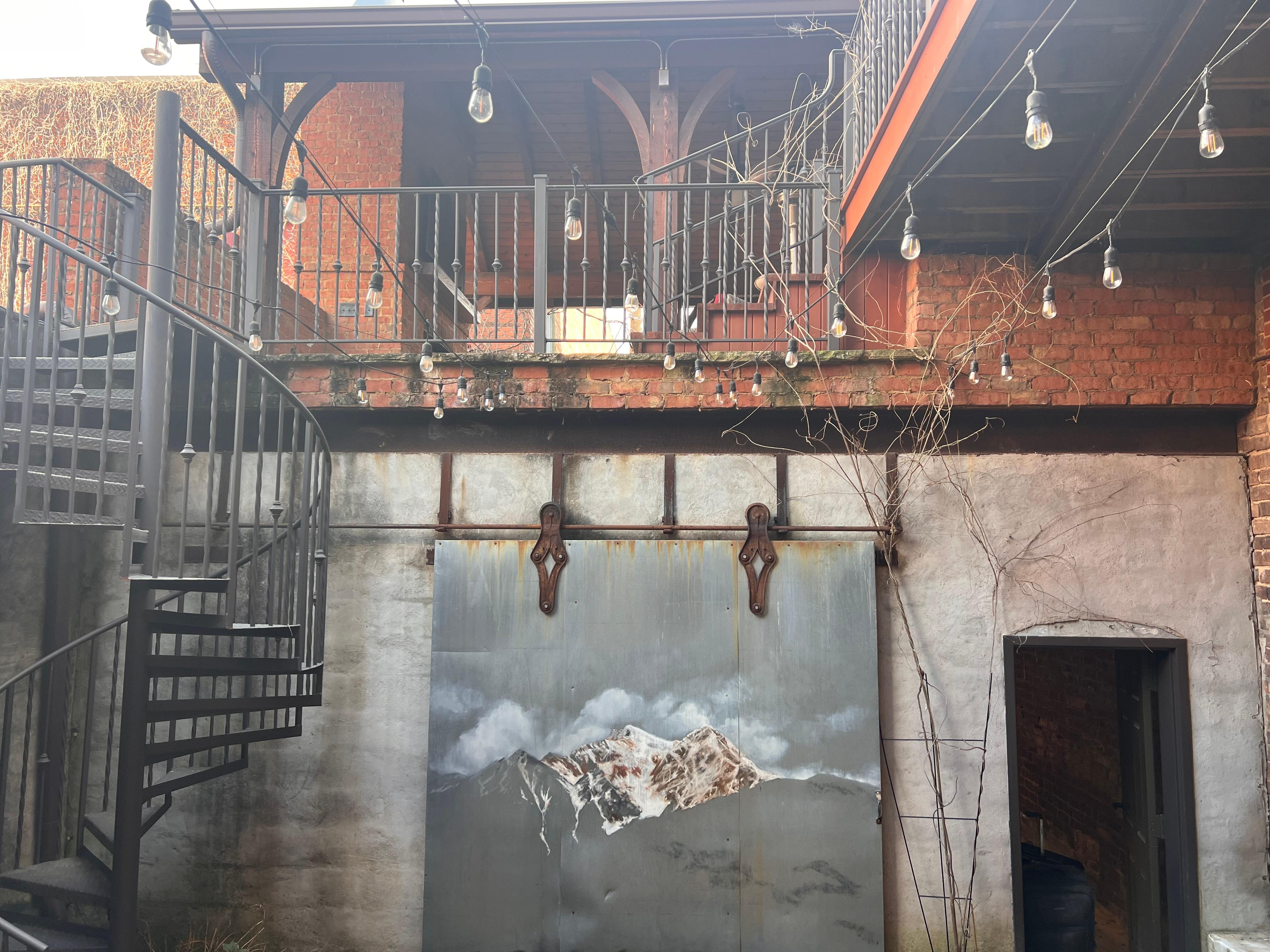 There are 3 separate living areas: The first is the forward living room facing Broad Street. This space is open to the dining area and an open galley kitchen; The second, is at the rear of the loft. There is a spiral staircase from that area up to the bunk bed rooms which are suspended above the rear living room. Third, is a covered cedar cabana over the garage with a gas fireplace.
