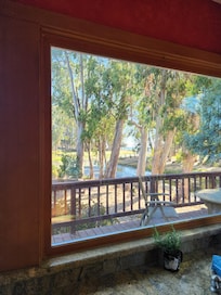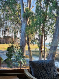 We love the short walk to the beach. We often would catch the sunset, strolling along the water's edge or walking along the opposite side of the lake. Sometimes we would take some wood down to the beach and have a cozy fire, roasting smores or watching the meteor showers. Or for a different view, we would go to Pleasure Point and watch the surfers. We also enjoy having our meals out on our deck overlooking the lake or sitting in our spa at sunset or under the full moon. I love that there are outside views from every room and the picture window in the grand room frames one of the best views.