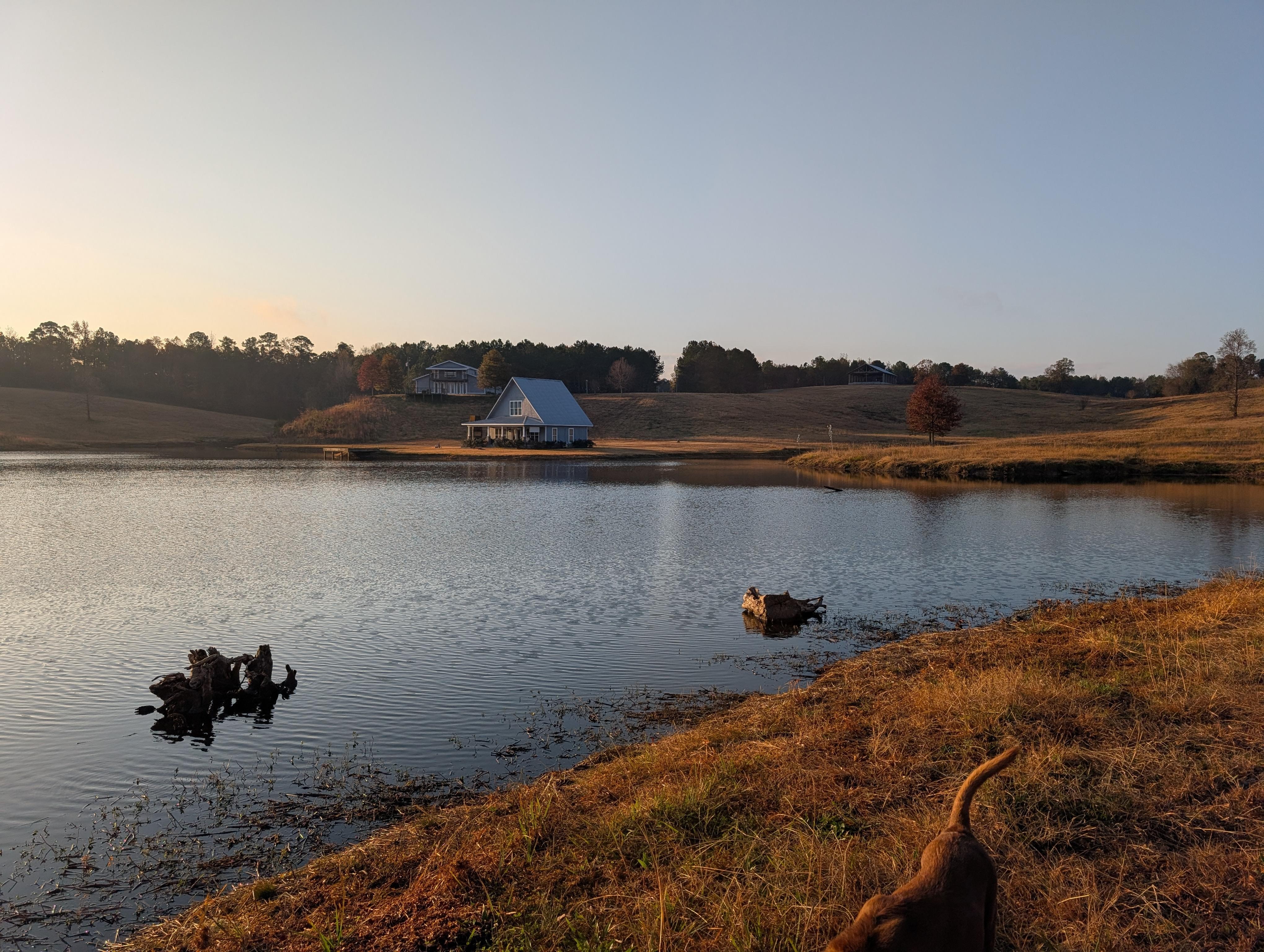 Thank you for sharing your little piece of heaven. The cottage is spacious, extremely clean, with great character, and has all the amenities needed. Venue was very easy to find and enter. The immediate property and adjacent hillsides provided plenty of room for our dogs to roam and play. The dock is spacious and great for morning coffee and evening cocktails. And to top it all off, the lake is LOADED with hand size bream and 8" - 15" bass. This would be the perfect place to introduce your spouse and kids to catching. Bring plenty of worms or crickets and float them 4' - 5' under a bobber or on the bottom with a couple split shots. Our stay was everything we dreamed of and more. We will be back for a longer stay next time.