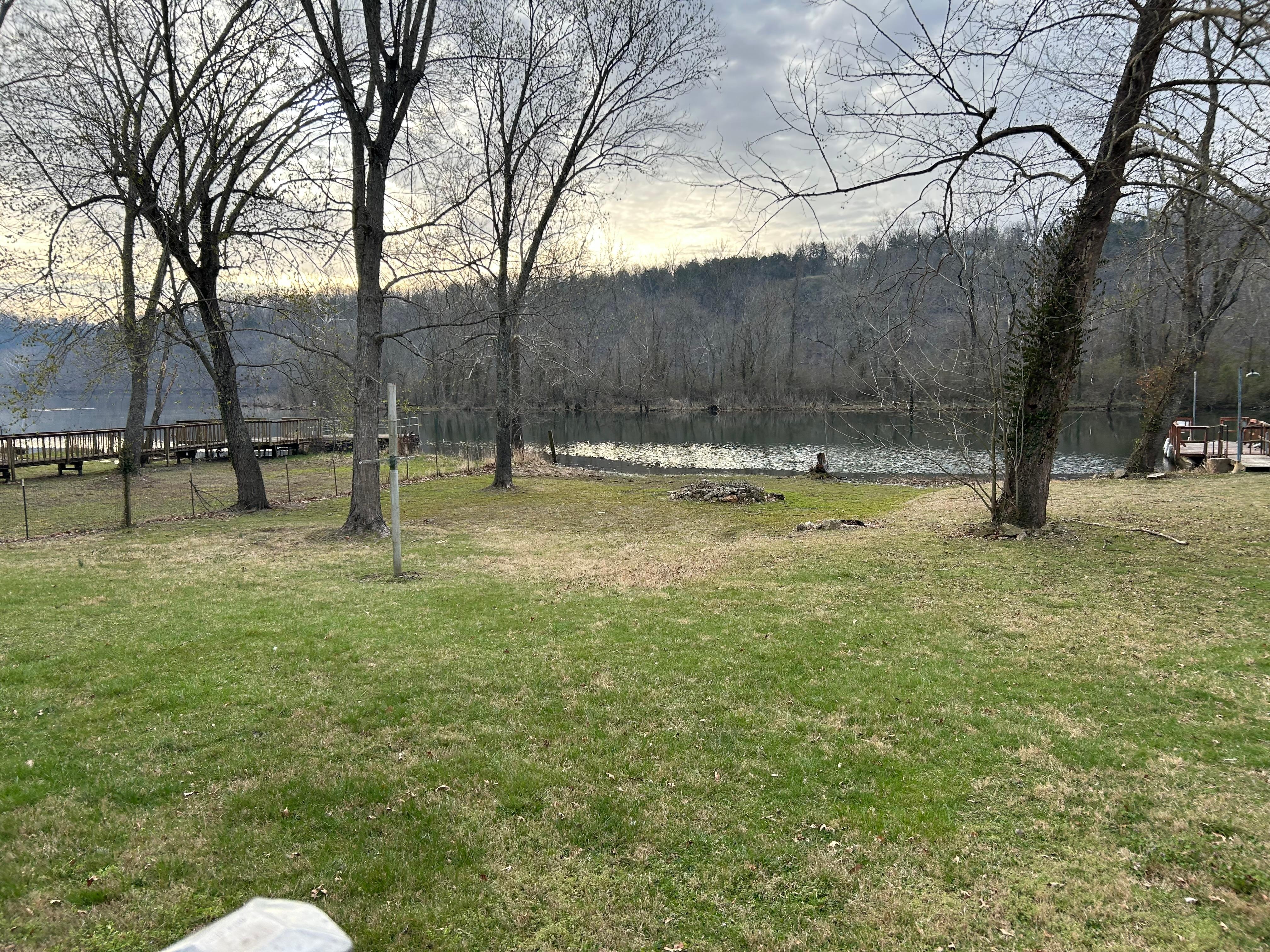 Wake up steps from the water and spend evenings around the fire pit overlooking the river. This private waterfront retreat features a dock for fishing, a large yard for relaxing, and easy access to Branson entertainment just 20 minutes away. The dock is ideal for fishing and relaxing by the water. Due to natural vegetation along the shoreline, swimming is not recommended.