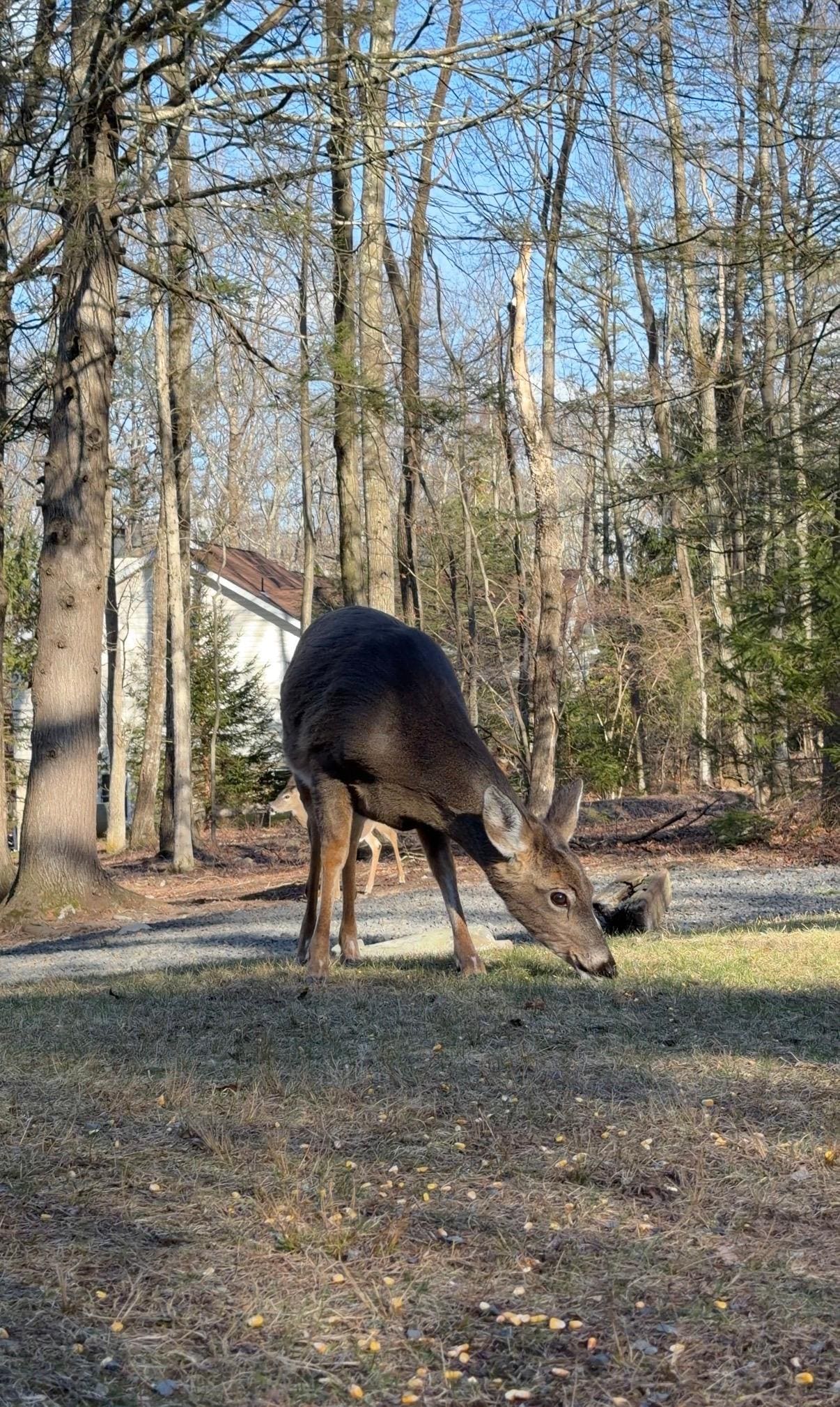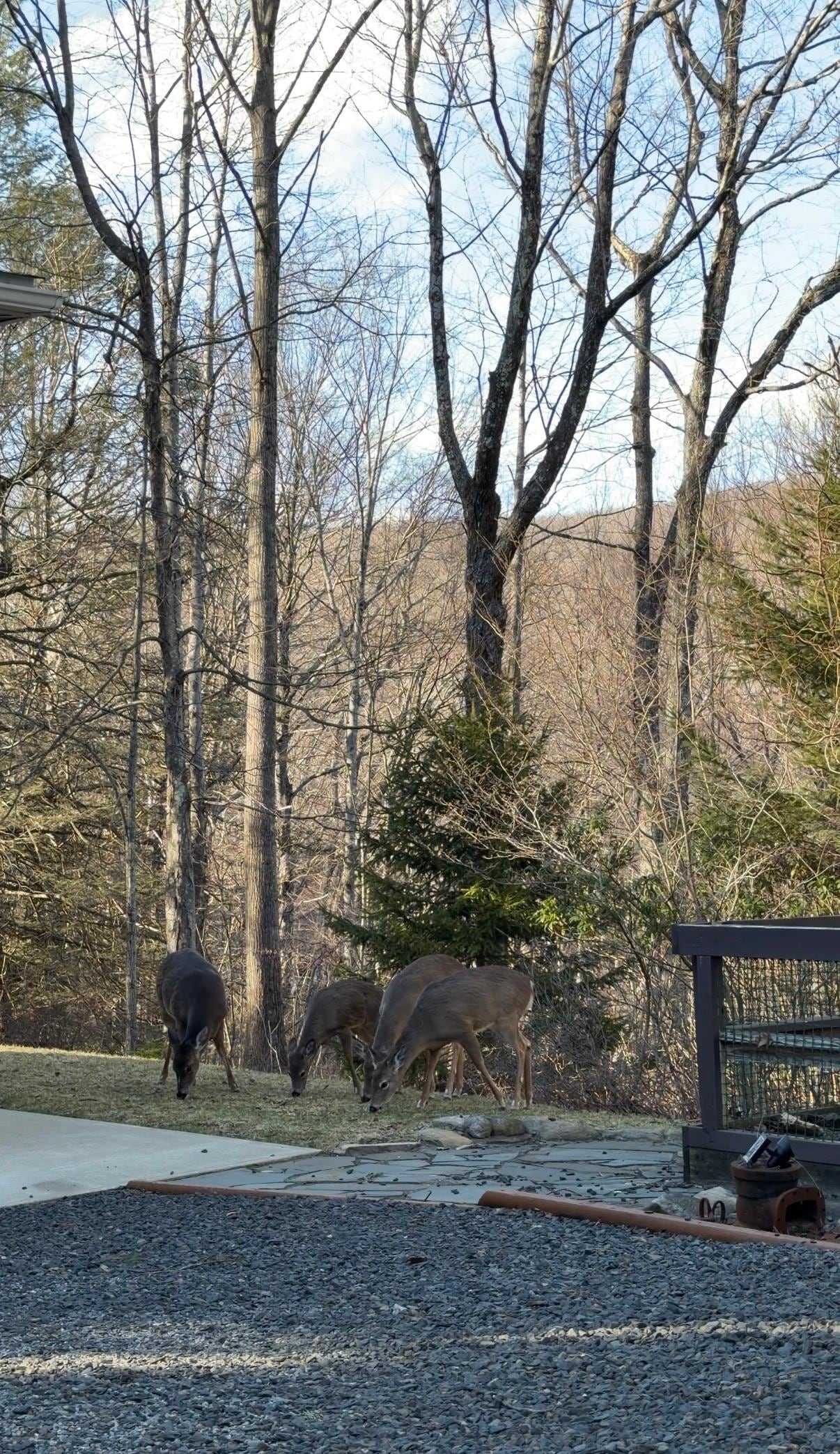 Feeding the precious local deer in the backyard