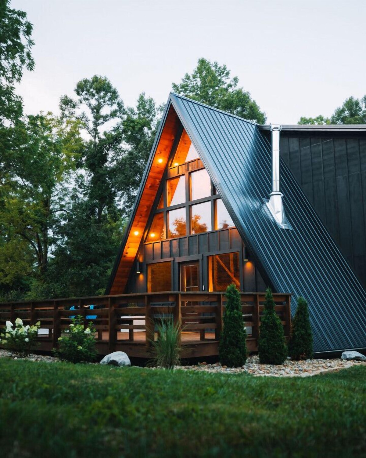 Photo gallery for Modern A-Frame + Barrel Sauna | Hot Tub | Kid`s Fort | Private Trails