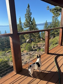 Biscuit's Lakeview Lodge has AMAZING panoramic views of Lake Tahoe and the surrounding mountains from the upstairs great room, master bedroom, and rec room downstairs. Every one of the four bedrooms has at least a filtered view of the lake.