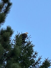 Towering pine trees frame the property, creating a private, woodsy atmosphere. From the moment you arrive, you’ll notice the wildlife—deer wandering through the yard, loons calling across the water at dusk, eagles soaring overhead, and ducks gliding along the shoreline. It’s the kind of place where mornings feel slow, evenings feel cozy, and nature is always close.