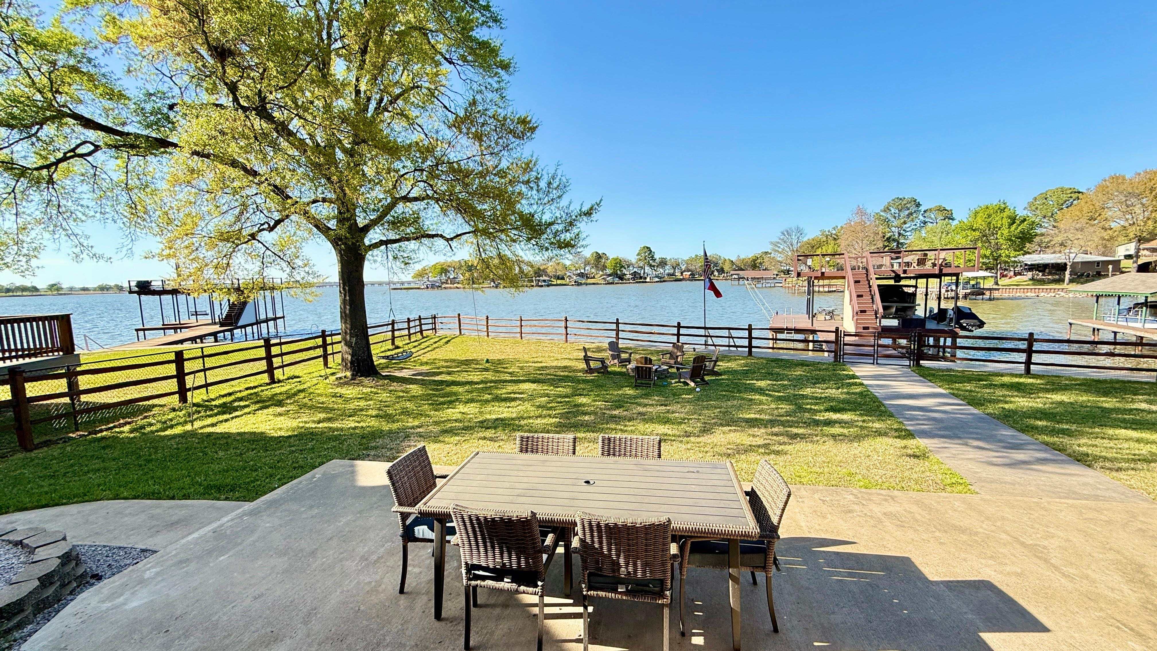 Come live the lake life at this 3,300 square foot, remodeled waterfront property. We are a kayak or jet ski ride away from the lakesides reataurant Vernons (temp closed 2026 live music and play area for kids) and Lou Lous snow cone/adult beverage shack (with games)! Have questions on pricing? Send us an inquiry/message, we’re happy to chat.