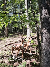 Something for everyone at this Coolfont mountain retreat. Relax on the spacious deck taking in the scenery or get out and enjoy all of the amenities that Coolfont and Berkeley Springs have to offer. The fireplace with wood provided and 4 person hot tub make for the perfect cabin experience. Large wooded lot provides peaceful seclusion but activities abound just a short walk away. Seasonal pool (summer months), ball courts, restaurant, and brewery are all a stroll through the woods away.