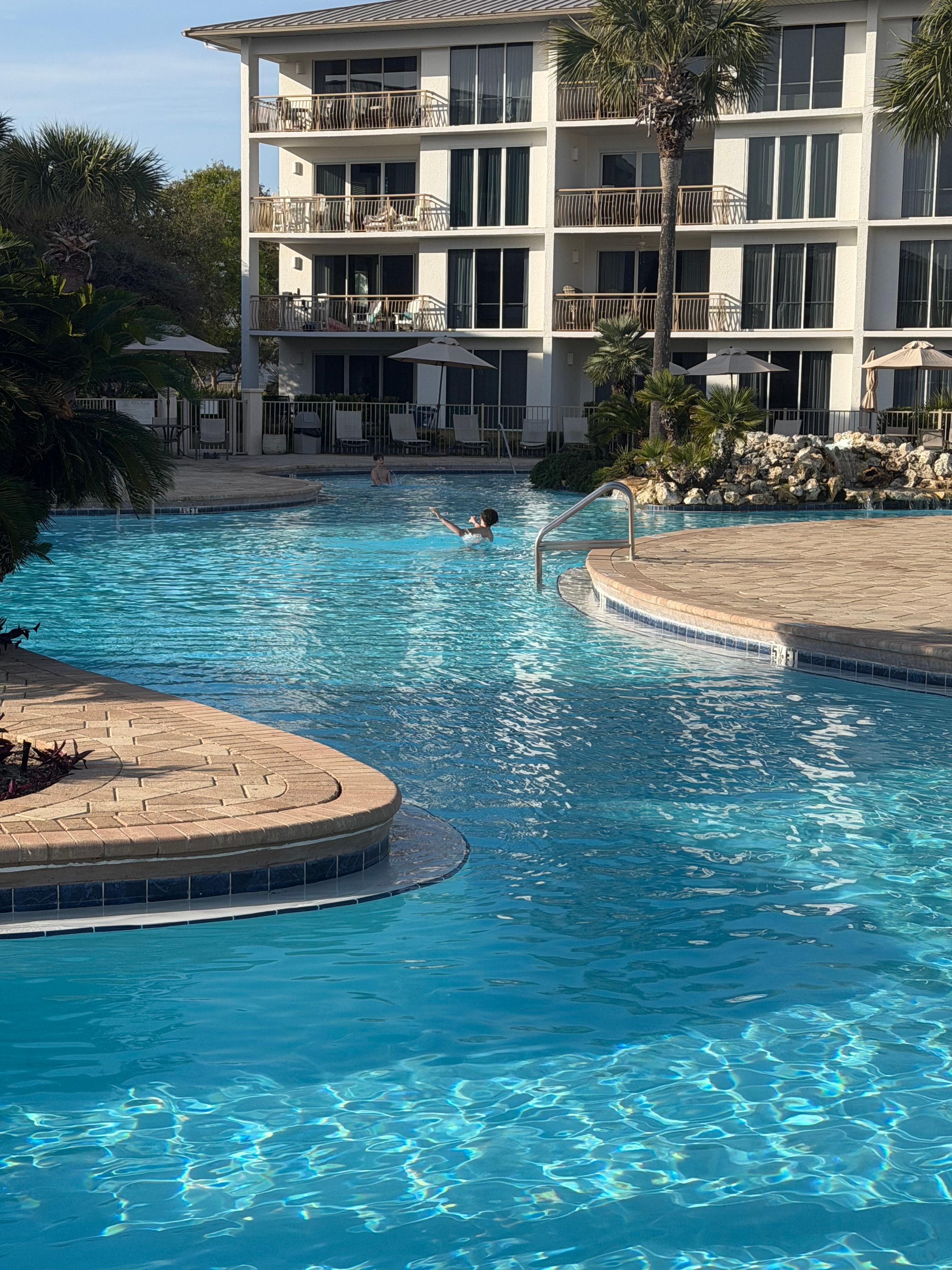 We’ve stayed in the High Point condos several times and love it every time. This unit in particular was well decorated and fully equipped. Also such a great location being on ground floor. It made everything so easy. I’d wake up every morning and open the blinds, and it was such a gorgeous view from a gorgeous condo. I would stay here again 100%. The lagoon our pool is amazing and we always love to grab lunch at crappy Steve’s grill. right there on site. One of the main reasons we stayed at High Point was because of its great location. I parked my car on the first day and we never got it out again. We walked or biked everywhere we went. It was lovely!