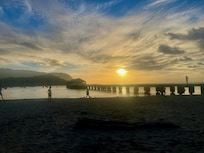 Enjoy BBQ’s beside the pool and jacuzzi with waterfall features within the complex, or slip into the fitness center for a quick workout, both are located just steps from our condo. Nearby, there are walking trails throughout Princeville, to the shopping center and restaurants, to the golf course, and nearby beaches-Anini and Hideaways. The Plantation is located across the street from the Makai golf course. The St Regis Resort is located 1 mile from The Plantation and is a beautiful spot to have a mai tai (or your drink of choice) and watch the sun set over Bali Hai. Or (our favorite) take a quick 7 minute drive down to Hanalei Bay, a 2 mile crescent shaped beach where the mountains almost touch the sand. It is simply one of the most gorgeous beaches in the world!