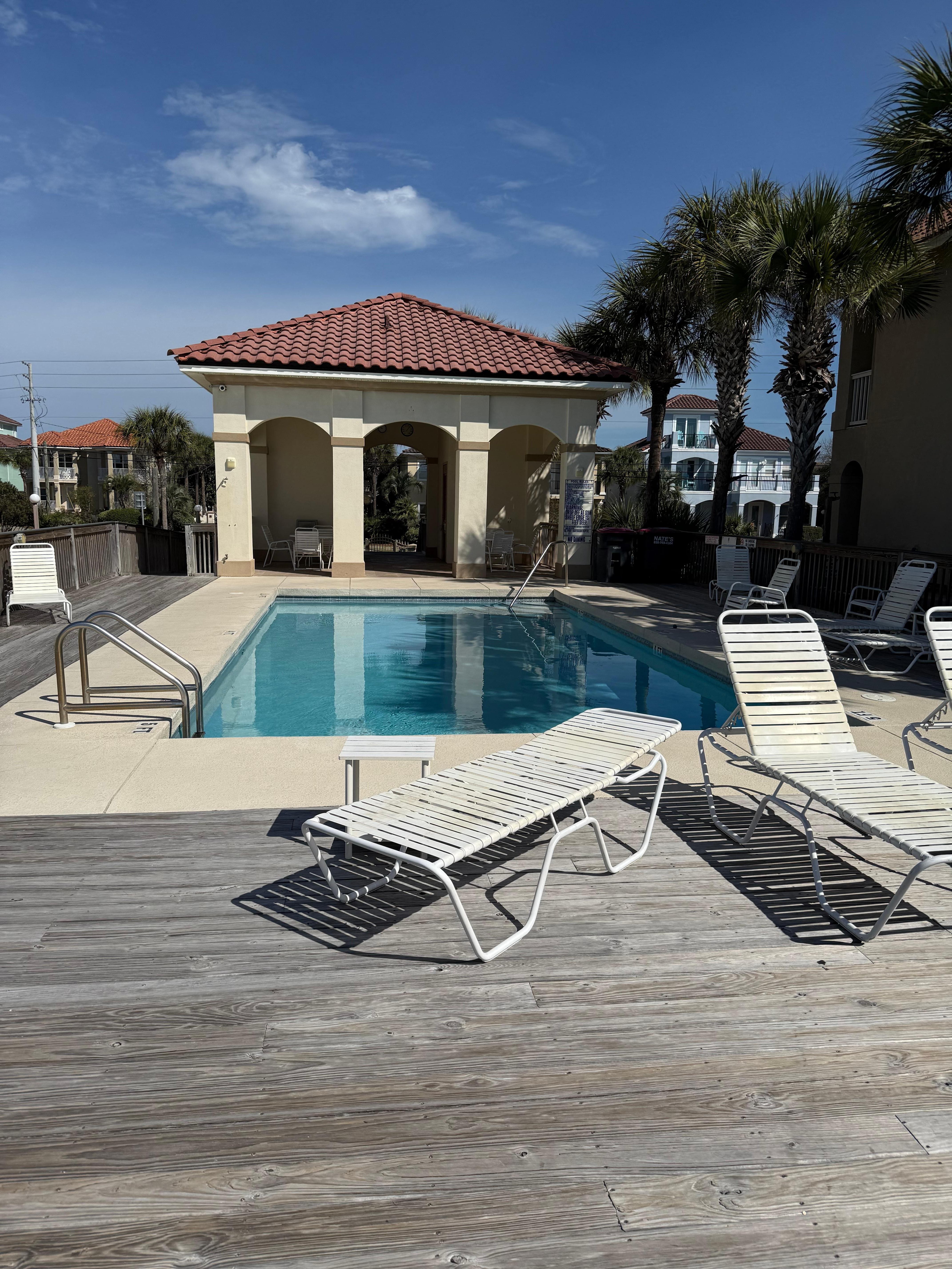 We never used the pool and were disappointed the restrooms had signs “out of order”. I contacted Blue Swell but never heard back. I guess renters weren’t allowed to use them. It was a long walk back to the house.