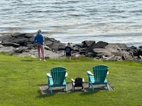 At Schooners Landing you can enjoy walking along the rocky shore looking for seaglass or launching your kayak. You can also enjoy tranquil evenings sitting around our propane fire pit in the lawn by the water with seating for 8. We provide bicycles, golf clubs, fishing poles, tennis rackets, corn hole and plenty of outdoor games. Enjoy a walk through the grounds or play Frisbee golf on our 9 hole (6 goal) Frisbee golf course. We love children and provide dozens of things to keep the little ones occupied, such as children's movies, children's books, puzzles, games, toys, etc. If you have infants or toddlers, we provide cribs, a high chair, baby monitor, strollers, playpen, car seat, bed rails, etc. If you have golfers in your group, we are just 10 minutes away from one of the most beautiful seaside golf courses in New England at the Samoset Resort. (www.samosetresort.com)