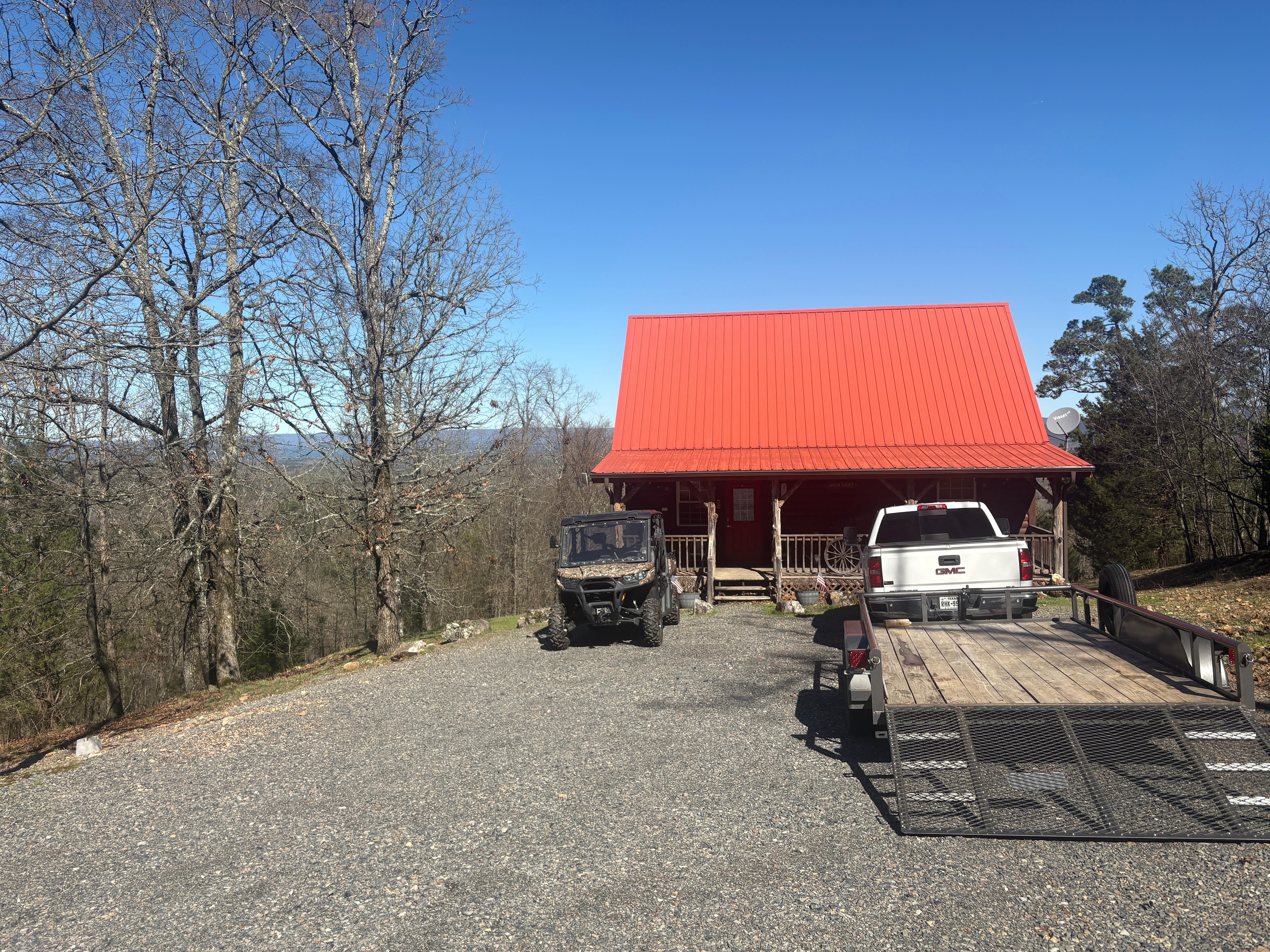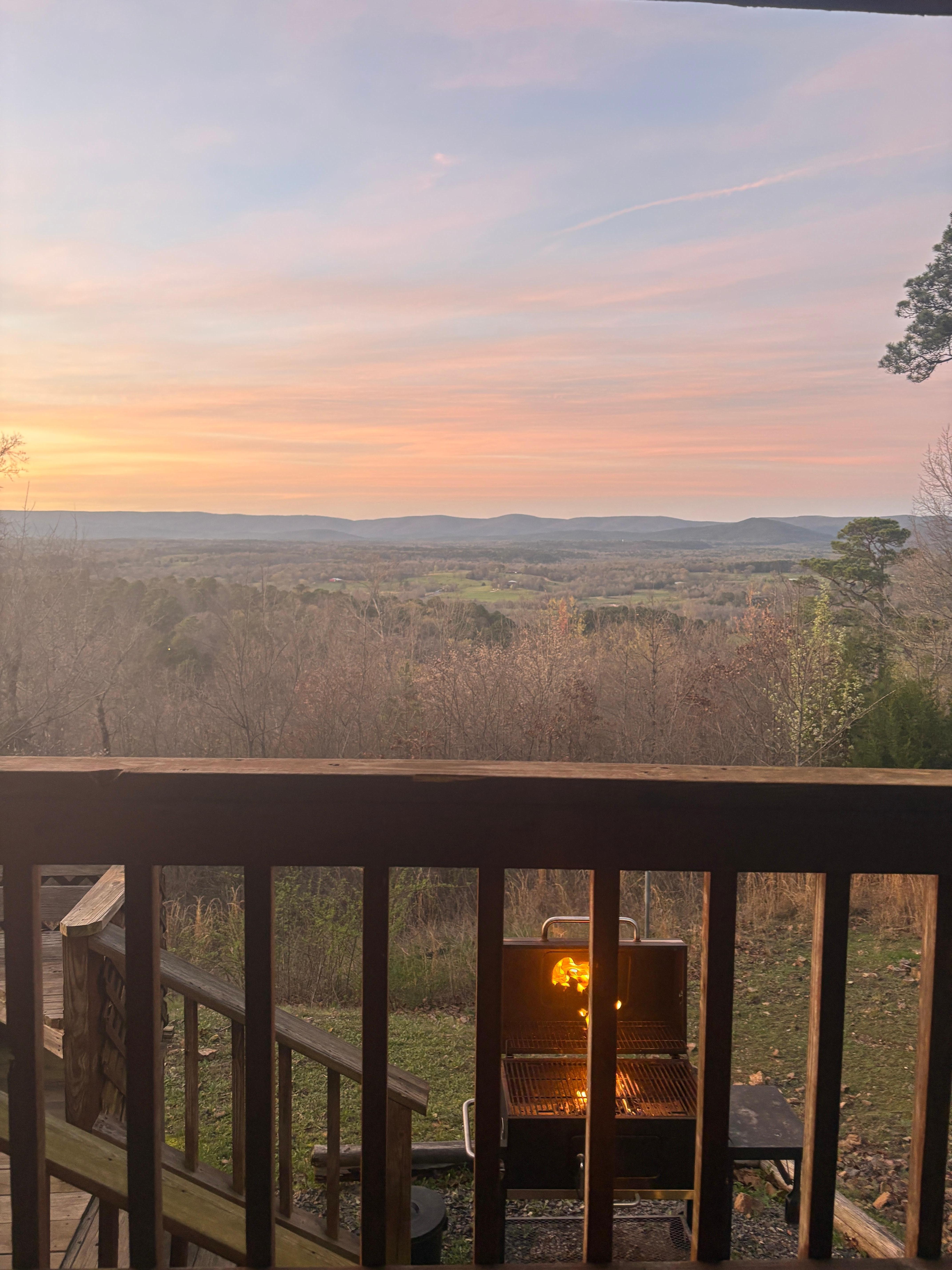 Honey, this cabin will send you over the Moon! Relax, soak, snooze, and dream your way to the best cabin stay ever. Queen Sized Bed, Couples Jacuzzi jetted Tub , Kitchenette with two Burner Stove, Toaster- Oven, Refrigerator, Coffee Maker, AC/Heat, Satellite TV, Wi-fi, Screened in Porch, and Outdoor Charcoal Grill. Excellent Cell Phone Service. Beautiful picnic vista. 11 total cabins on site for family gatherings/large groups. Easy ride in access to Wolf Pen trails. (Mena Mountaintop Cabins, ...Our cabins are tops!)