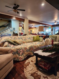 -Two living areas with couches/recliners/TV/Wifi and fireplace