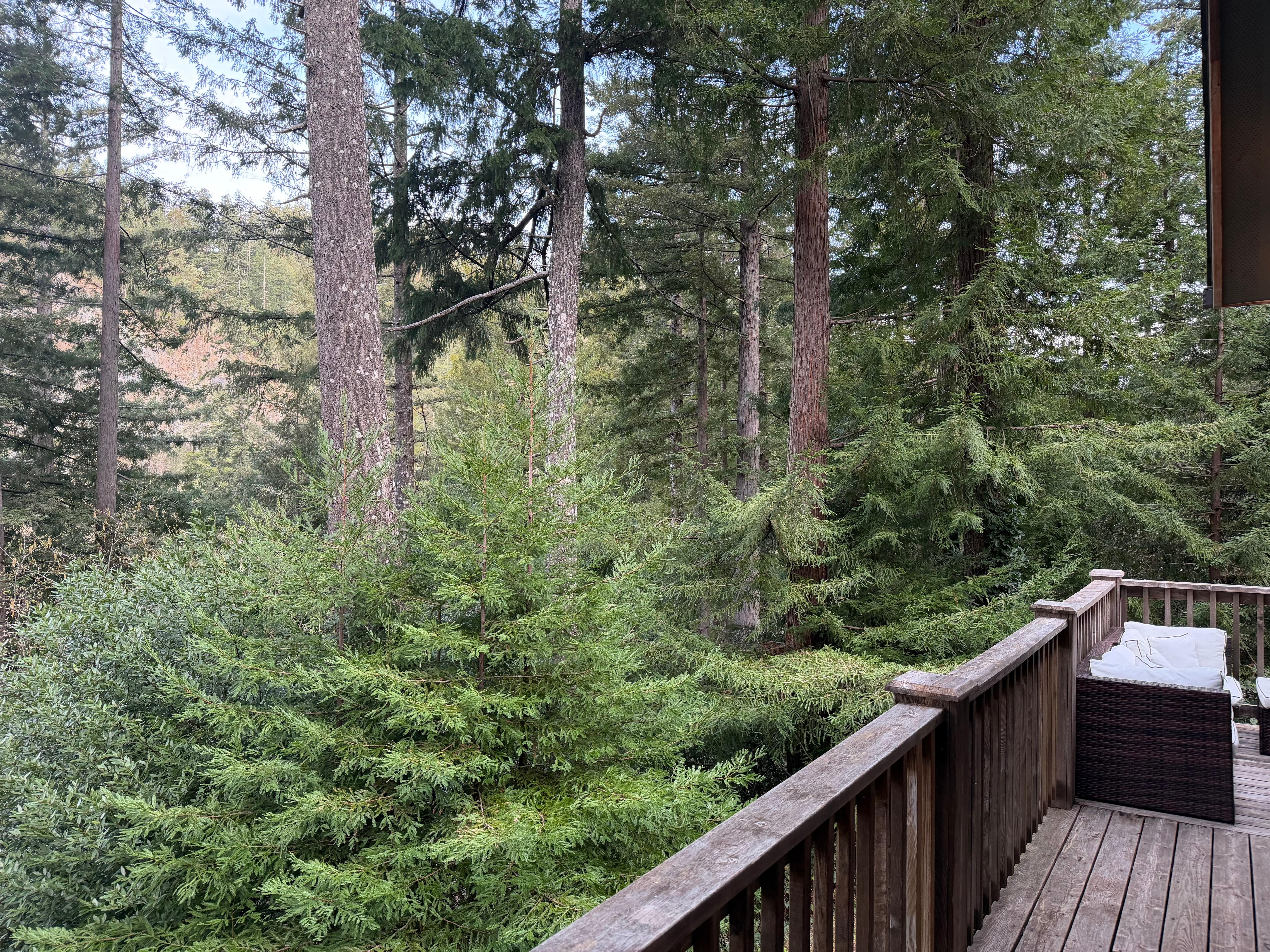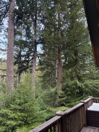 Step outside to your private deck, where you'll find ample seating, a firepit for cozy nights under the stars, and a BBQ grill for al fresco dining. Whether you're relaxing or entertaining, the panoramic views of the surrounding redwoods and river provide the perfect backdrop.