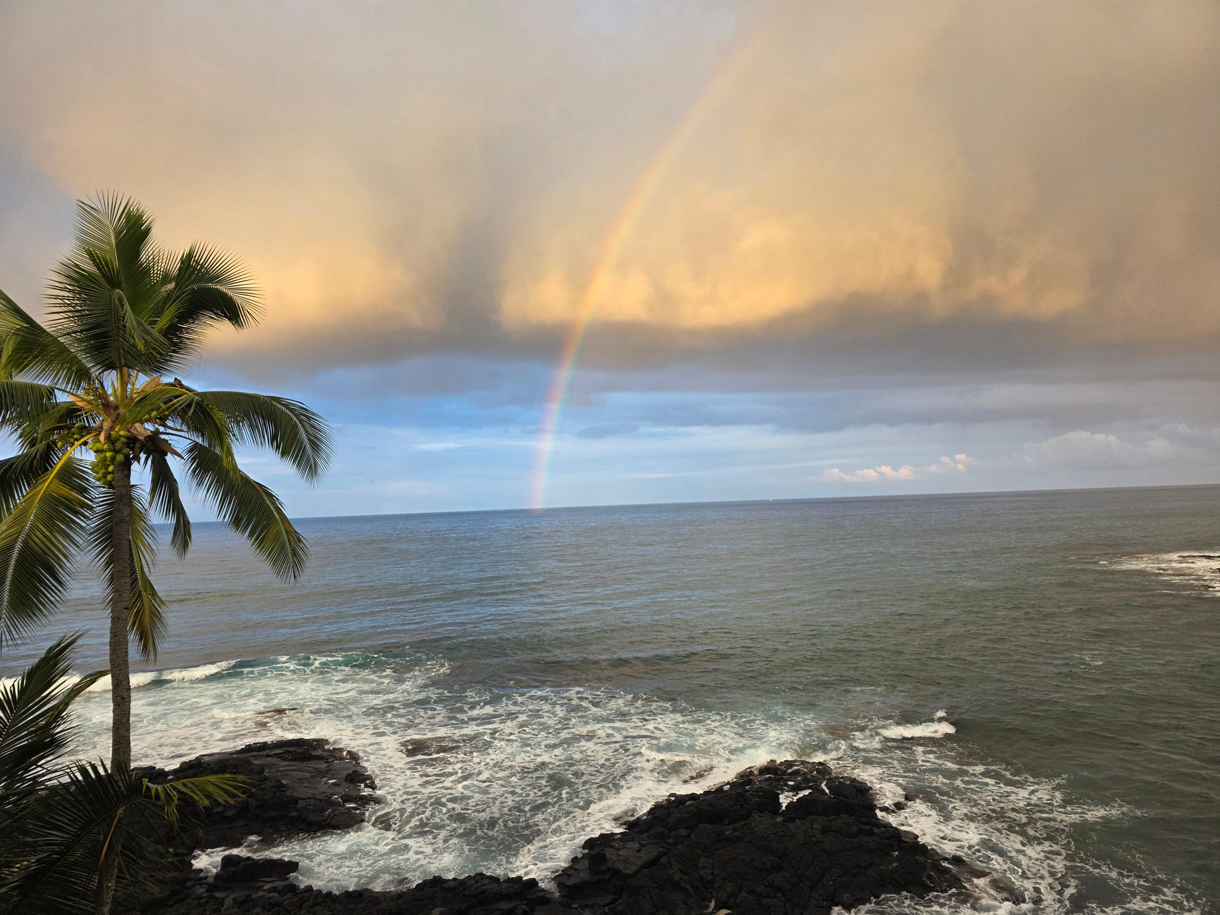 Located on the fourth floor and north-end of a four-story building, this oceanfront condo boasts first-class views as well as excellent proximity to Kona town and all activities. Watch world-class surfers ride the waves while dolphins frolic in their wake. Enjoy seasonal whale watching right from your lanai and get a close up view of the giant sea turtles that come up on shore to sun themselves! (No touching though!)