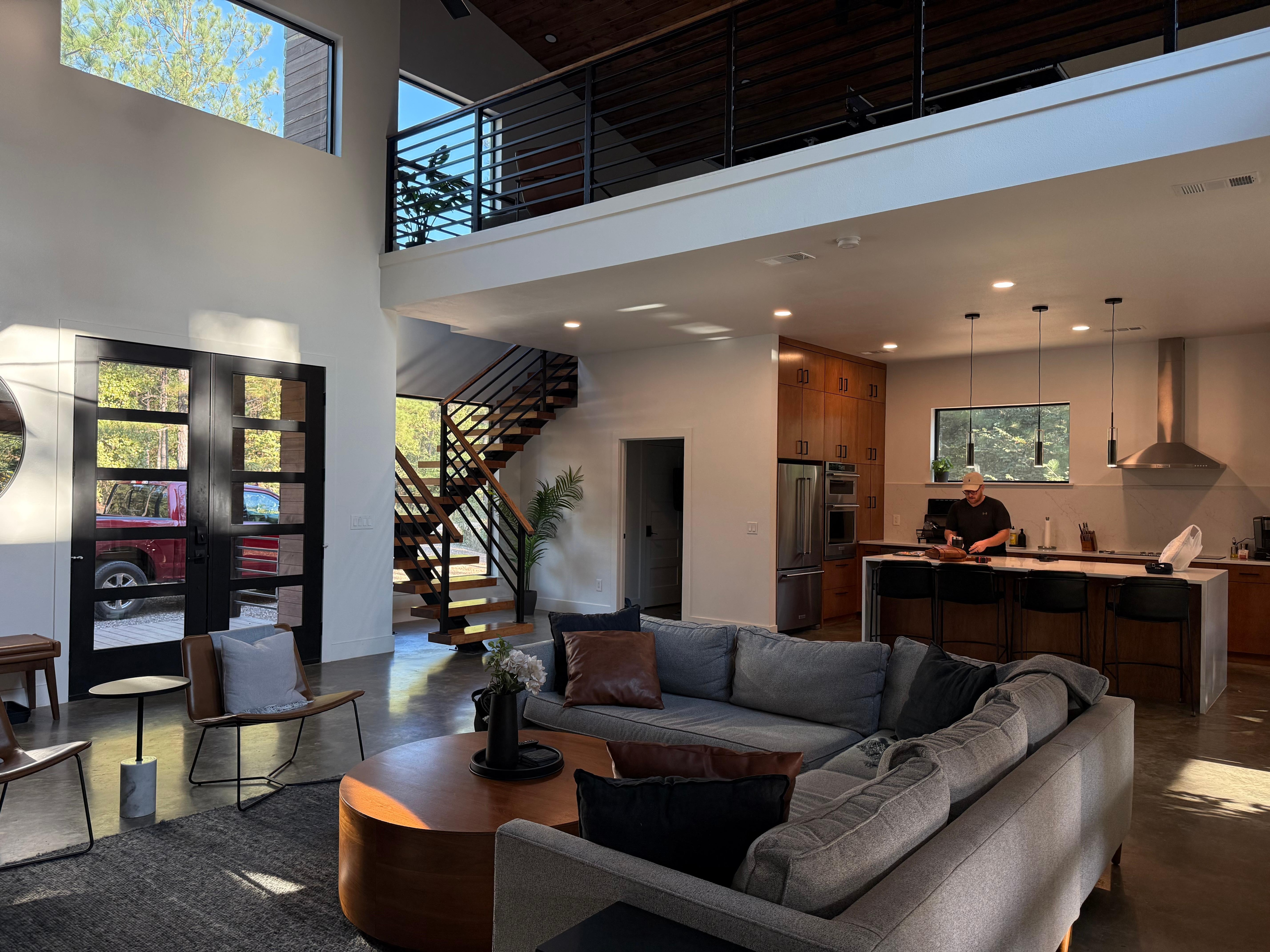 This is Timberstoneâa newly built modern luxury cabin conveniently located in the heart of Hochatown that provides a perfect retreat for families and friends. We offer a space complete with amenities for all and crafted with a serene blend of architectural elements and tasteful modern minimalist finishes that creates a rejuvenating sense of tranquility. Located on a quiet lot of wooded pines that is central to all the area has to offer with easy, flat roads leading to and from it.