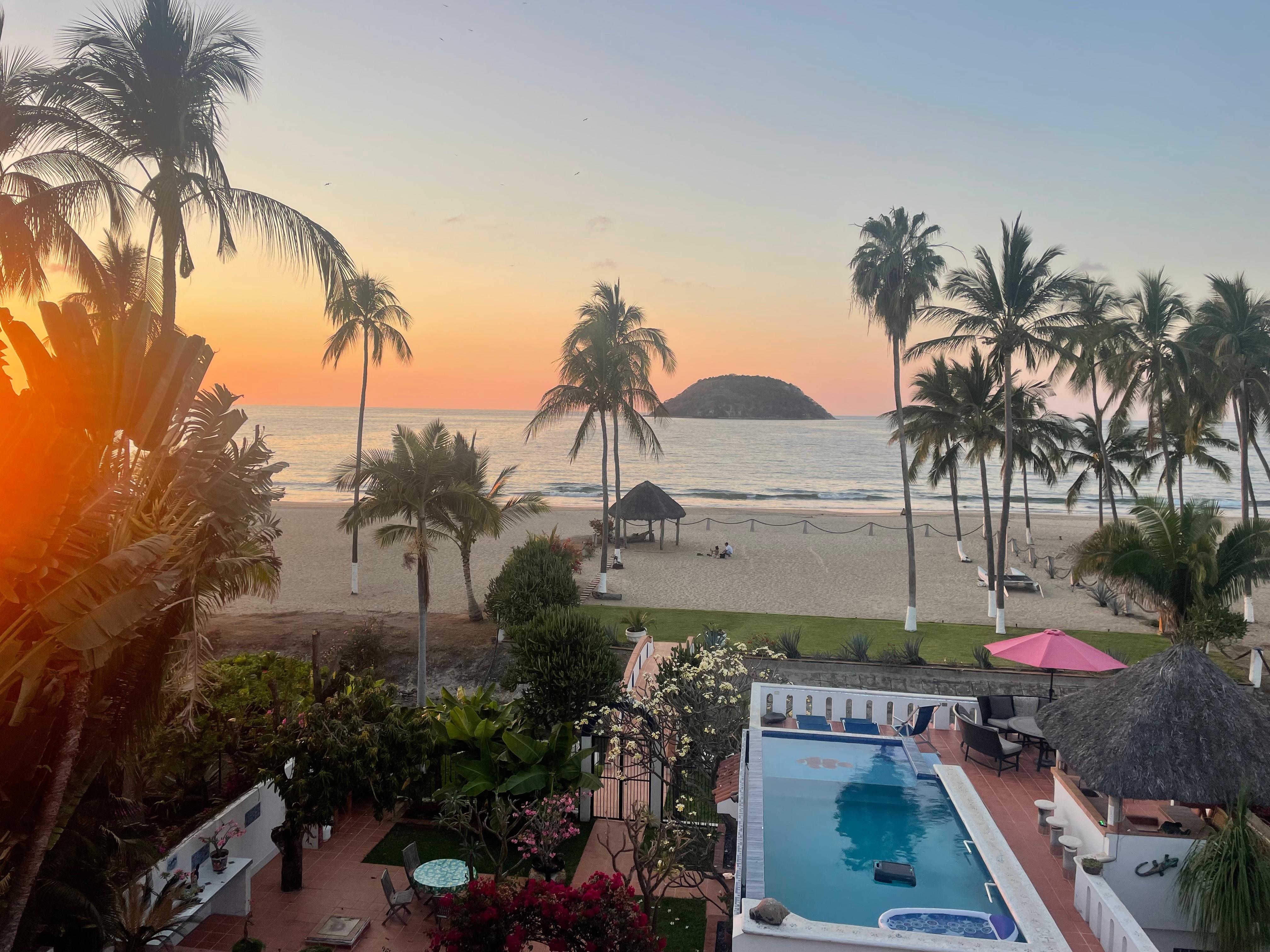 The ocean is a few steps away through our beach gate. Enjoy sitting on the beach or under our private palapa that is a few feet away from the shoreline. We provide sun umbrellas, beach towels and beach chairs. We also have two kayaks and a paddle board for guests to use. Our heated pool and pool deck is a great place to experience the sunsets that this area has to offer.