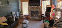 Unwind in the soothing hot tub, challenge each other on the nostalgic multicade game system, or snuggle by the fireplace after a day of adventures in the Smokies. The spacious King Bedroom offers a peaceful sanctuary, complete with an en-suite bathroom and spa-like touches for your ultimate comfort.