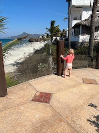 There are many things that make Casa Suspiro special. One of them is the unique access to the most beautiful beach in the area (same beach as the famous Kapuri Beach). There are no cliffs or 'short walks' to the beach. No rocky sand or golf course to come between you and the beach. Casa Suspiro is located right on the beach. In fact, you can watch family and friends play on the beach from every level of the house....or have a cocktail on the pool deck while you watch! Also, there are now several restaurants on the beach that you can walk to. Check out our reviews, this place is magical.