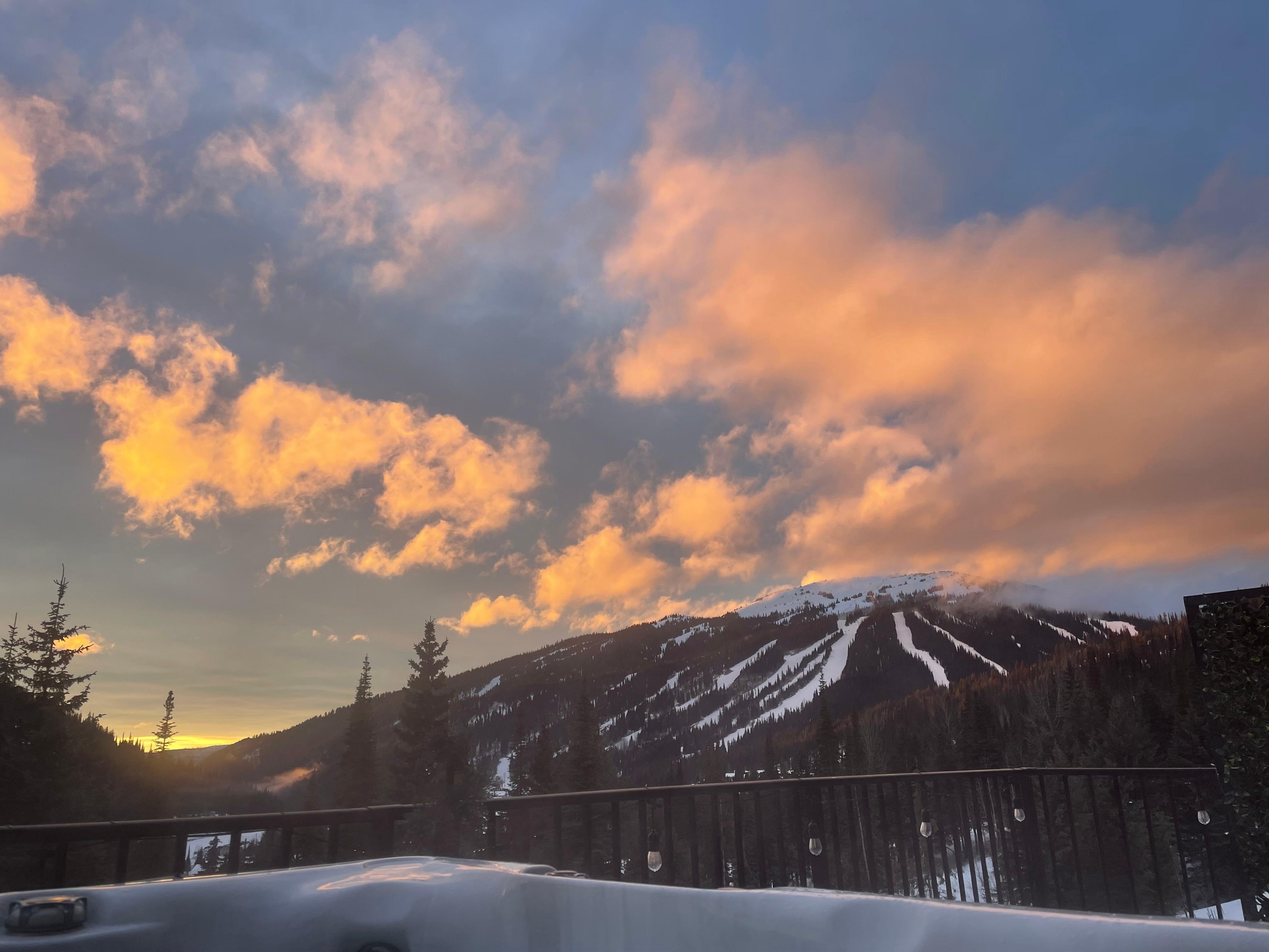 It's the feeling you get the moment you arrive through the front door. You're at home and you're on holiday. It's the grand vaulted ceilings secured with large windows allowing natural light to pour in each day. It's the stunning unobstructed mountain views overlooking the crisp, clear alpine. It's that fresh mountain air and crystal blue skies. It's the birds chirping while enjoying your morning coffee from the Jacuzzi listening to the gentle crunch from skiers gliding down nearby. It's the faint sound of children laughing in the distance. It's the complete silence when fresh snow is falling as you watch the groomers doing their evening laps. It's our views of the sunset every evening.