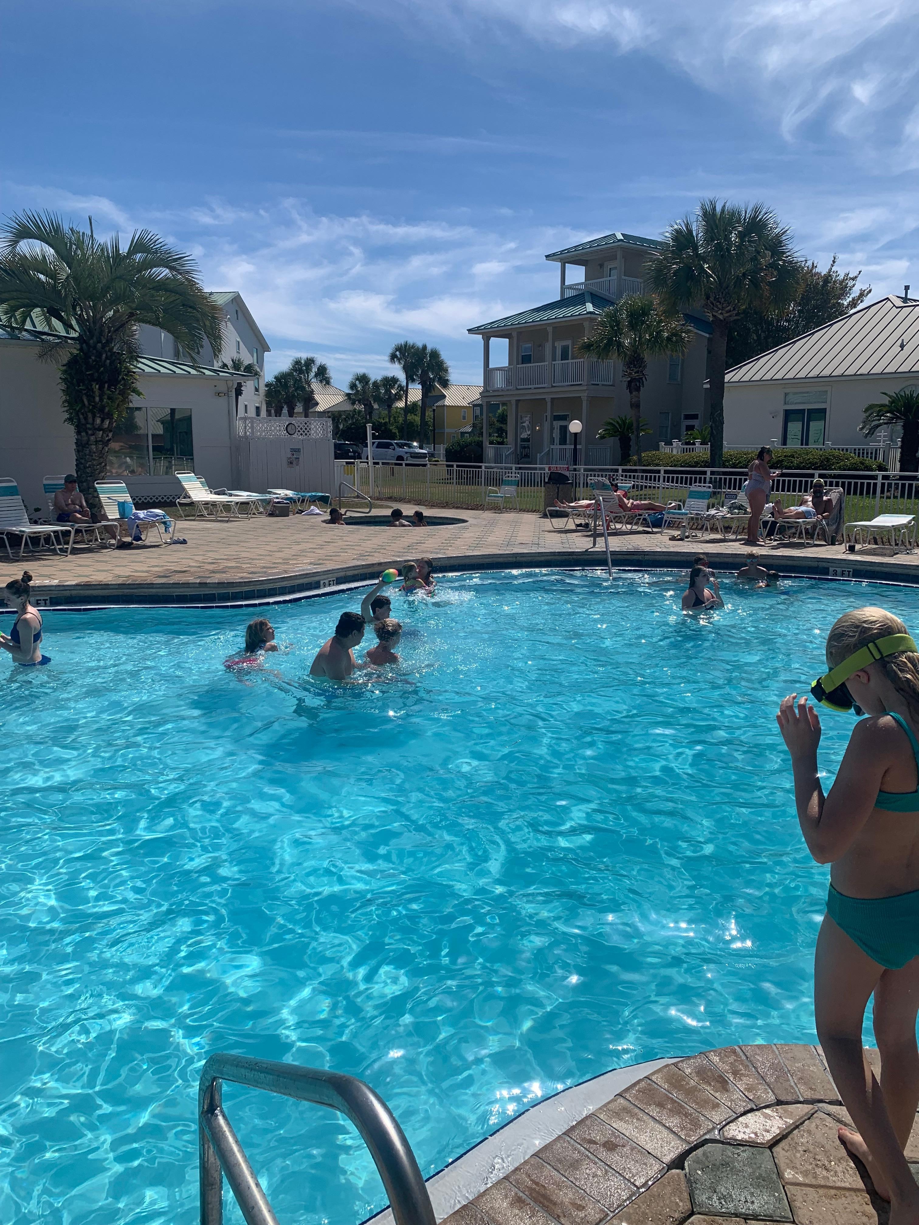 The view from our balcony was great (you can see ocean from a distance & it’s beautiful). The heated outdoor pool was awesome! The condo had plenty of room. It could use a spatula for cooking eggs (I picked one up at Walmart for 2). We enjoyed walks along the beach. Our son loved the basketball hoop. The elevator worked. I recommend this VRBO, as it’s in a perfect location. I ran on the running/bike path a few times into Destin which is really pretty & safe.