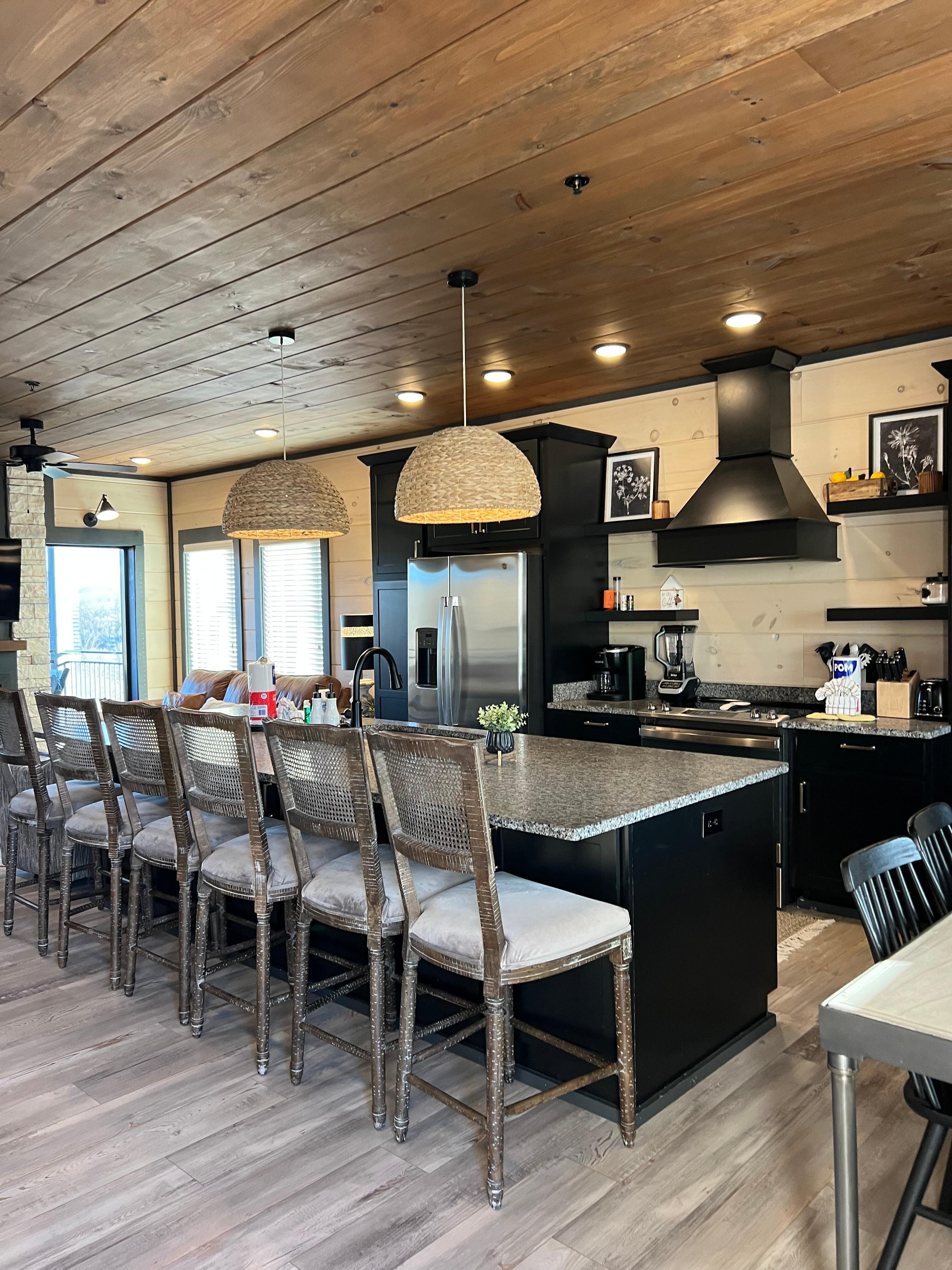 Be the first to stay in this NEW luxury cabin in new development with over 3500 square feet. This house easily sleeps 16. Brand new outdoor water park opening March 15 2025! Free to guests. Includes outdoor pool, outdoor hot tub, lazy river, lawn movie area, outdoor picnic area and more! Kids will LOVE the upstairs game room with built in bunk beds (with TVs in each bunk and curtains to close :) ) Game room equipped with TV, 2 multi-cade arcades, shuffle board and plenty of board games. Also, complete with mini fridge and ice maker. Sit back and enjoy a game on TV. Plenty of room to sleep 4 in the game room (pull out sofa and twin/twin bunkbed) with full private bathroom. Two Primary bedrooms on main level with king size beds and full bath attached to each. Don't miss the upstairs bedrooms! Complete with king beds and full baths as well. One of the upstairs rooms also comes with built-in queen/queen bunkbeds too (easily sleeps 6 in one room). All Bedrooms are suites with their own private baths. Queen bed in the downstairs bedroom.