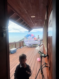 side and makes you feel like you’re the passenger on a sea voyage. If you’re a cook, the kitchen has all amenities to enjoy barbecuing or a home-cooked meal with an added bonus of ocean view while doing the dishes. When you head to the beach don’t forget the sand toys and beach towels upon your return shower off the sand with the outside shower. This homes central Shelter Cove location allows you a short walk down to the Gyppo’s Ale Mill (fantastic handcrafted beer, delicious food and live music) and the Surf Point Coffee + Bistro (best eggs benedict, homemade bagels, and coffee). If you head the opposite direction you will find Delgadas Pizza and amazing Mi Mochima that offers amazing Venezuelan food. Come enjoy our home and discover the hidden secret of Shelter Cove. t. The lucky guest, who gets the third-floor bedroom will take the winding staircase masterly crafted up to the captains quarters. This cozy bedroom allows views of the ocean from either side and makes you feel like you’re the passenger on a sea voyage. If you’re a cook, the kitchen has all amenities to enjoy barbecuing or a home-cooked meal with an added bonus of ocean view while doing the dishes. When you head to the beach don’t forget the sand toys and beach towels and when you return super off the sand in the outside shower. This homes central Shelter Cove location allows you a short walk down to the Gyppo’s Brewery (fantastic handcrafted beer, delicious food and live music) and the Surf Point Coffee and Bistro shop (the best eggs benedict, homemade bagels, and coffee). If you head the opposite direction you will find Delgadas Pizza and amazing Mi Mochima that offers amazing Venezuelan food. Come enjoy our home and discover the hidden secret of Shelter Cove. After a long day of exploring, enjoy a soak in the hot tub located on the second story deck overlooking Shelter Cove or play a game of cornhole with our new custom boards made locally. We also have golf clubs and a pickleball set for your enjoyment. *The home is three stories. The third bedroom is on the third floor and my favorite. It is cozy and charming and the stairs leading up are a hand built metal/wood masterpiece but may not be suitable for elderly and young children. (However it’s the requested room of my mother-in-law who’s 73 when she stays) ** We are happy to host your four legged family members and but ask that they stay off of the furniture and beds. The property is not fenced and it’s your responsibility to clean up after your pet.