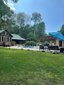 The proximity to town - yet has privacy and feels like you’re deep in the woods. It has a beautiful yard that welcomes the local the wild life and feels so peaceful. The pool, hot tub and river made it so special. it was love at first sight.