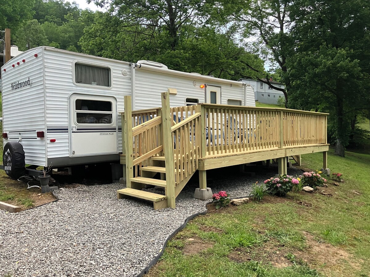 Cozy RV, New River and hiking trails nearby. Peaceful and quiet deer visits freq