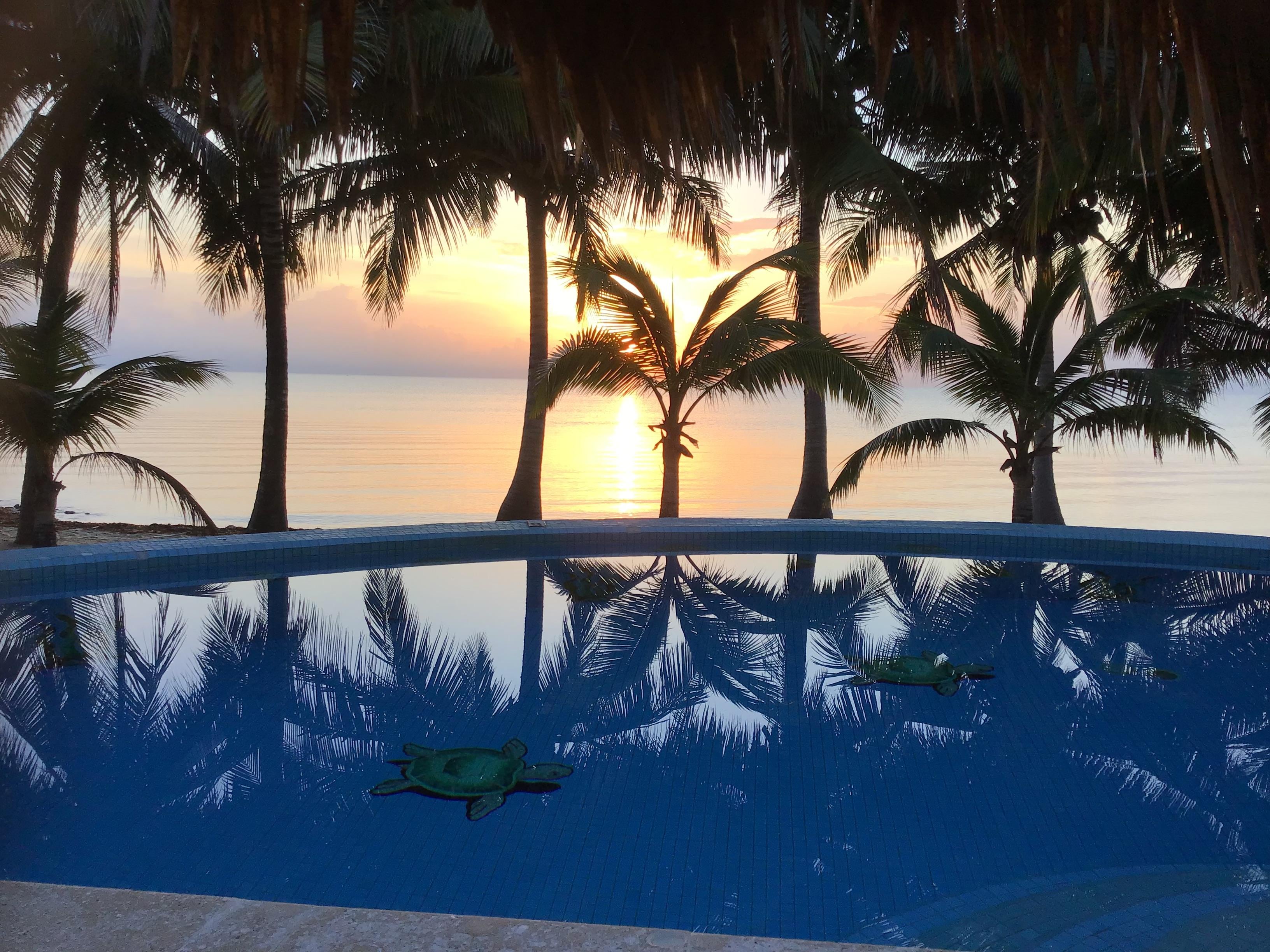 Step outside to discover your personal water sanctuary, featuring a large six-foot-deep swimming pool ideal for family fun, complemented by a separate, intimate plunge pool. Lounge on sun beds under the Belizean sun, relax in a hammock, or enjoy al fresco dining beneath the shaded palapa, all while listening to the gentle Caribbean waves.