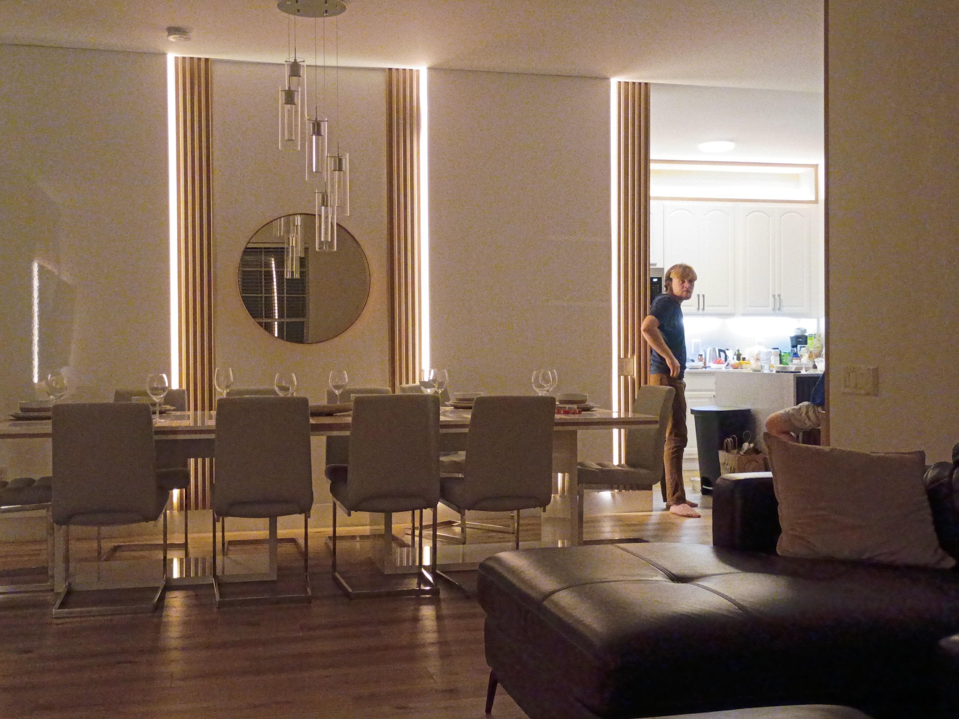 The living area is light and bright with hardwood flooring throughout. The open plan living floor has a comfy seating area, 75" smart TV and flows seamlessly into the well equipped kitchen, so the cook can chat with guests at a comfortable dining area for 12. while preparing a quick snack or gourmet meal,