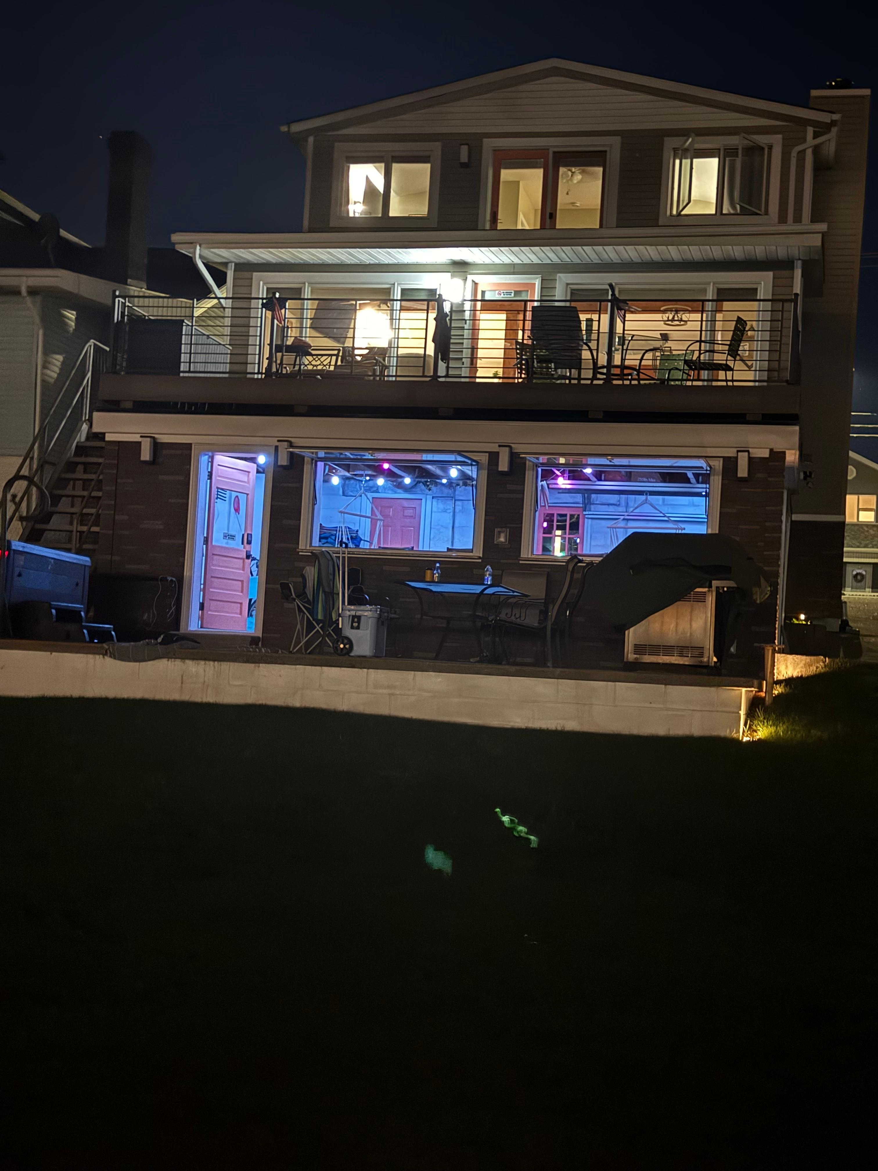There is a Ring Video Doorbell on the front porch. there is a ring camera on the back patio.