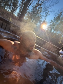 Outdoor Space: The cabin features a private outdoor area with a hot tub, perfect for relaxing under the stars. A cozy firepit invites you to gather around for evening conversations and marshmallow roasting. Additionally, swings are available for both children and adults to enjoy.