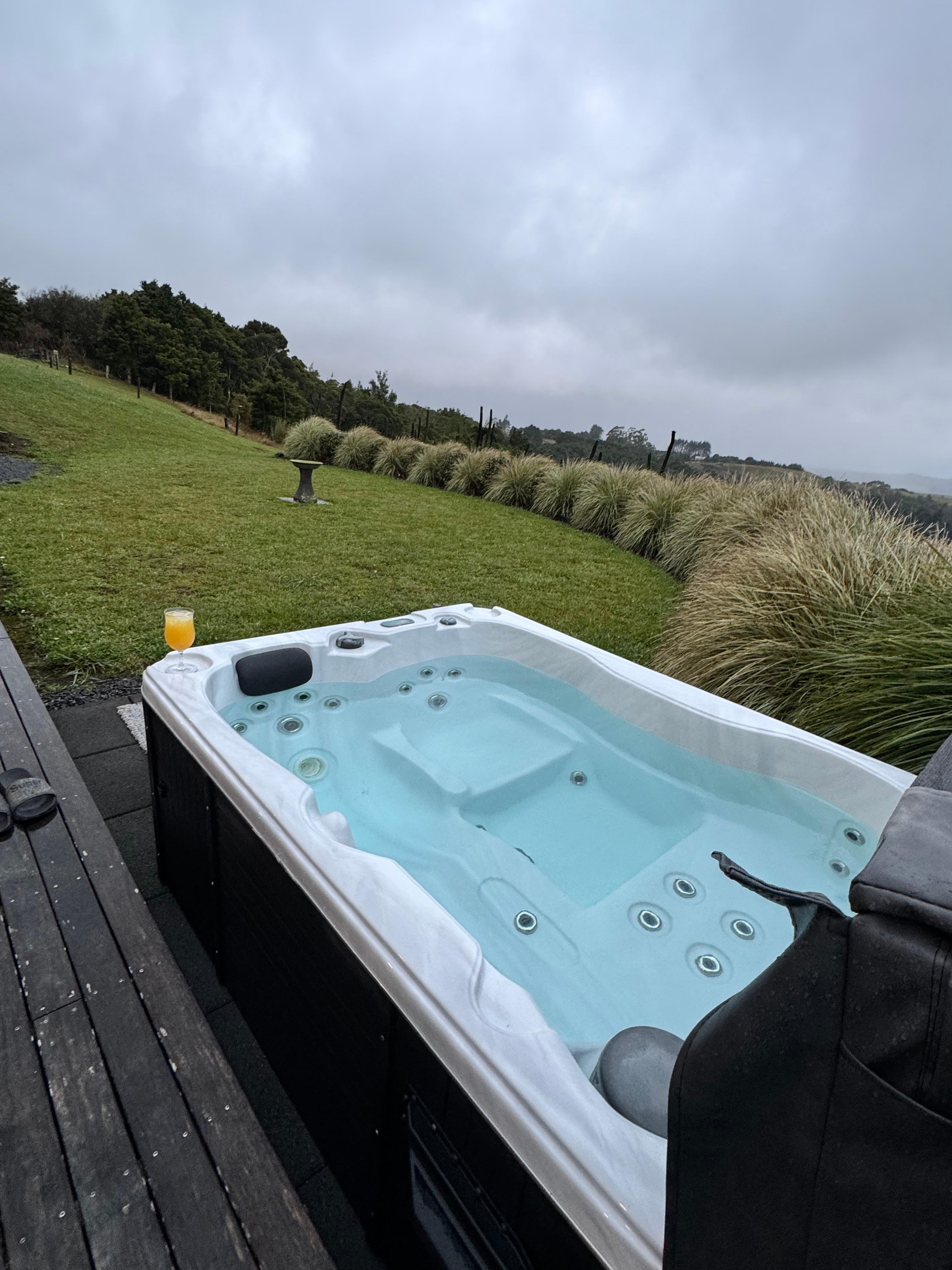 Features: Fast WiFi, Air conditioning/heatpump. Luxurious Super King bed (pillow selection: large sit-up, memory foam, woollen or goose feather). Large level-entry shower. Two person stone bath. Kitchenette (cooktop, microwave, dishwasher, fridge, plunger coffee, Nespresso coffee machine & kitchen utensils). Smart TV features: Sky TV (movies, sports & local channels) Netflix. Soak the night away in your very own outdoor spa pool while gazing at the unpolluted night sky, listening to the sounds of native kiwi and wildlife. Guests can enjoy the supplied continental breakfast or cook a casual meal on the supplied barbecue.