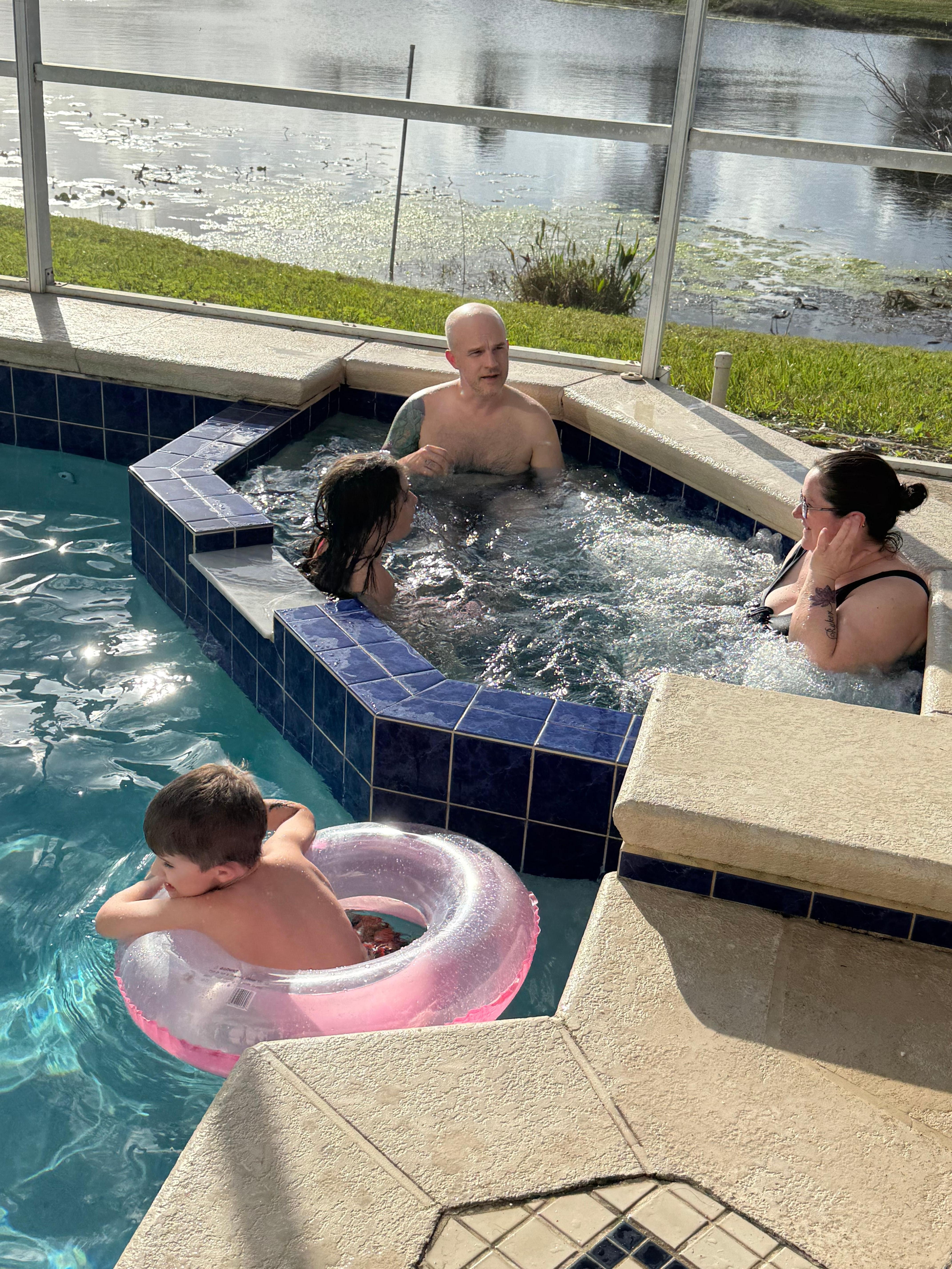 Have breakfast watching hot air balloons take off and fly over the lake... Take a quiet day off away from the attractions and let the kids play in the pool while you prepare the family dinner... After a busy day at the parks, enjoy your well-deserved cocktails watching birds fishing... Be amazed by magnificent Florida sunsets while resting in your private spa and share these magic moments with your friends and family back home thanks to your broadband Internet access...